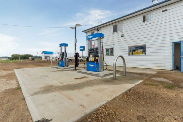 Business with Living Quarters! Want to be your own boss and manage your business the way you want? This is the perfect opportunity to purchase a long standing business (28 years) in a community that supports those who are part of it! This turn key business shows good cash flow. The gas station offers the primary draw for customers and MANY complimentary sources of revenue: 2 bay car wash (big enough for big rigs, buses and motorhomes), commercial water filling (with a 40 cube – yes, 40,000 litre storage tank) to fill large trucks quickly, propane sales, campfire wood sales, carpet cleaning, Purolator and even a laundry bay. The car wash is finished with tongue and groove, low maintenance PVC for longevity and ease of cleaning. It operates on time or coins. There is a suite with a kitchen, 4 piece bath and three other rooms that provide living quarters or additional income. There were major upgrades completed in 2023 with new/faster pumps, tanks & premium fuel. The owners have put a significant investment into capital in 2023 with new tanks, pumps and the exterior so that this will maintenance free for years. The key to this operation is that there are contracts in place that allow you to make your own decisions. This is the only gas station within a 30 km radius of Hay Lakes. For someone who is not scared of work and wants to build equity, this is it!!
