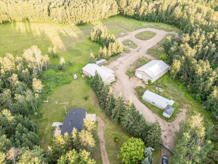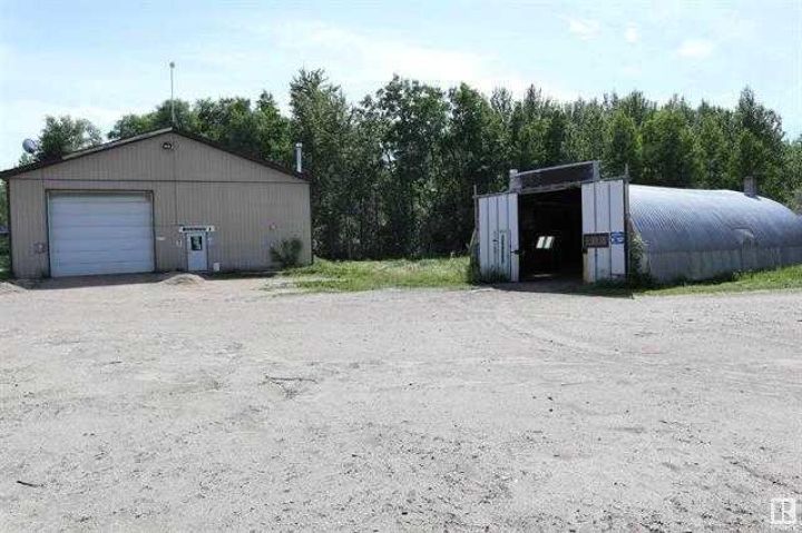 Great opportunity to live and have your business on the same Property! Beautiful private setting with trees, a creek and all located on pavement. This 35.12 acres hosts a 1465.73 sq/ft house with a 20x28 attached garage with a creek behind it and sheltered from the industrial yard. The graveled industrial yard is set up to move right in. On it is a 50x29 heated and insulated quonset with power and a cement floor. A 40x80 Fully finished Shop metal cladded inside and out with 2 overhead doors (12x14 and 16x14), heated, insulated, power, mezzanine, 3pc bathroom, with offices and lunch room in the front. A 50x80 drive through shop (18x14 doors) with power, heat, fully insulated with a mezzanine, spray booth, and office with two more overhead doors off the side. This beautiful property has extra room to expand your business or keep it the way it is.