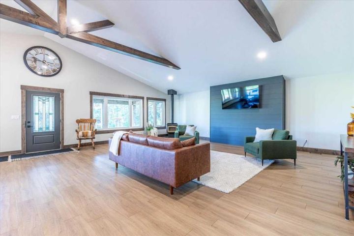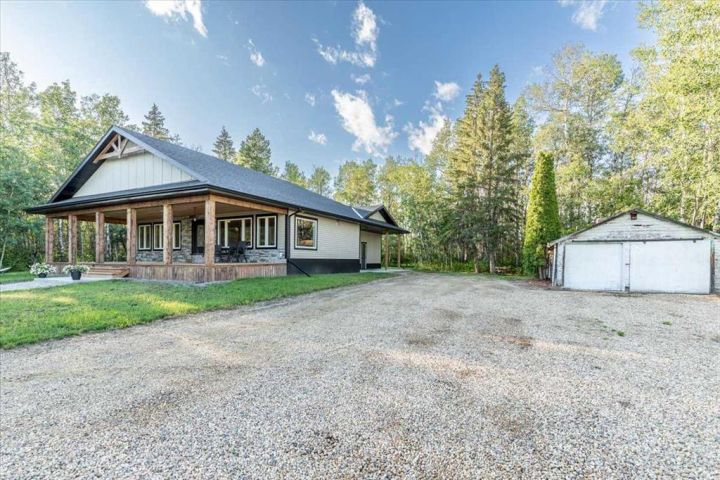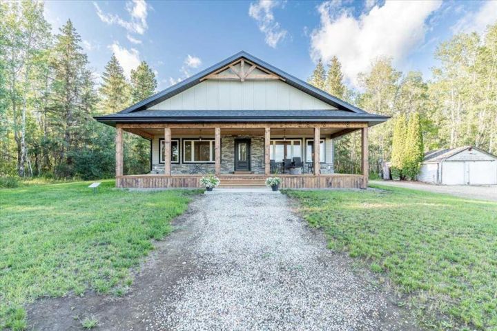 Beautiful Completely Renovated Home and Fully Finished 60'x40' Shop, situated on 13.34 Acres! This 1901 sq/ft home was professionally renovated in 2023/24 with New Shingles, Siding, Septic, Weeping Tile, Furnace, Pressure Tank, Electrical, Plumbing, A/C, Appliances, Flooring, Kitchen and More! The Main floor of the home has 3 Bedrooms with the Primary having its own 3 piece Ensuite Bathroom and Walk-in Closet with Custom Shelving. The New Kitchen has Quartz countertops, an Island, and a Corner Pantry with Custom Shelving. Open to the Living room that has a Feature TV wall, Vaulted Ceiling, Beams, and a Fire Place. A Laundry room with custom shelving, and a 4 piece Bathroom complete the Spacious Main Floor. The New Covered Deck provides great views of the private property. The Shop is Fully Finished with Power, Heat, Cement floor, and a parking pad in front of the 20'x14' door. There are Two Wells on the property and has power ran for RV parking. This Property must be viewed in person to appreciate it!