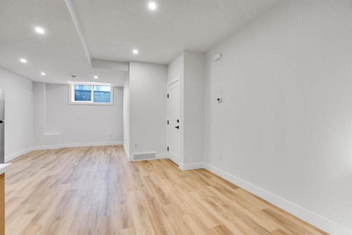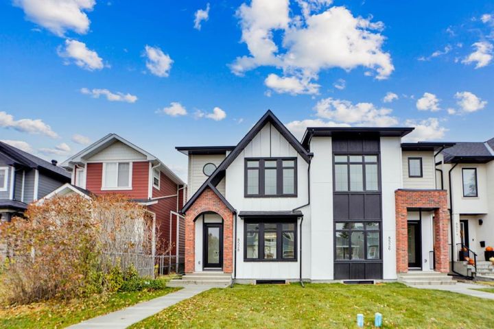 Brand-New Luxury Infill in Bowness | Legal 2-Bedroom Suite | South Backyard Luxury + Income Potential + Lifestyle – All in One Home. Move right in to this stunning, never-lived-in luxury infill featuring a bright open floor plan, designer finishes, and a legal 2-bedroom basement suite for rental income or multigenerational living. Enjoy a chef-inspired kitchen with quartz countertops, warm wood accents, premium stainless steel appliances, and a show-stopping waterfall island. The living room boasts a modern fireplace with custom built-ins and opens to a sunny south-facing backyard – perfect for entertaining. Upstairs, a spa-like primary suite with walk-in closet, dual sinks, freestanding tub, and glass custom shower, plus two additional bedrooms and full bath. The bright basement suite offers its own kitchen, laundry, private entrance, and full bath – ideal for guests or tenants. Prime location near Bow River pathways, Bowmont Park, Market Mall, Winsport, schools, and quick highway access to the mountains.