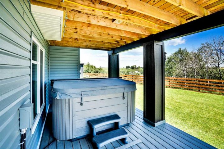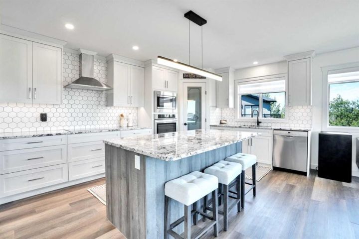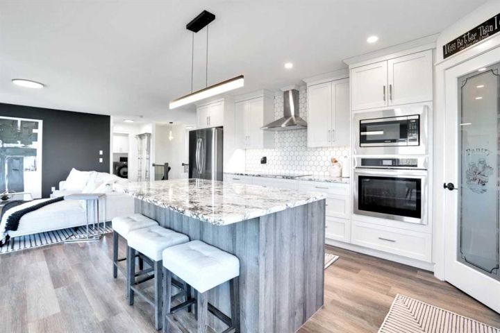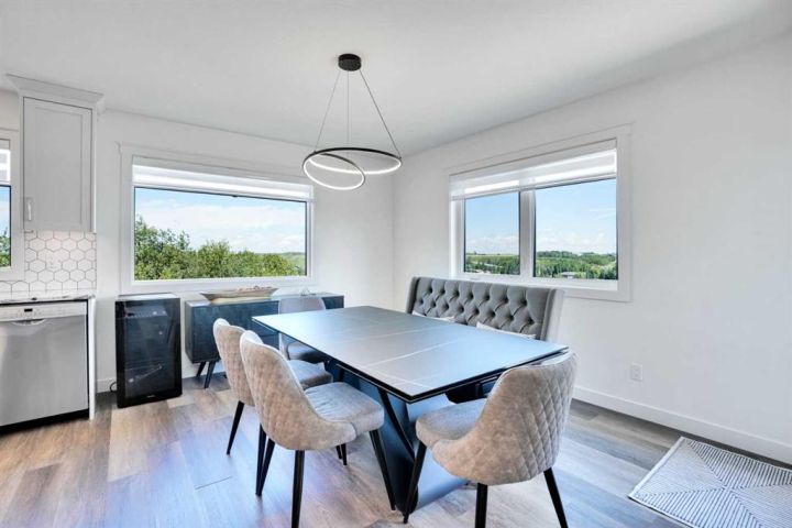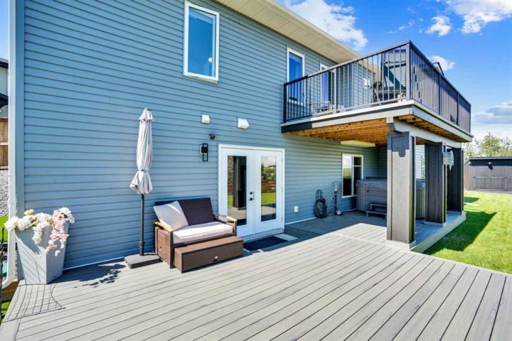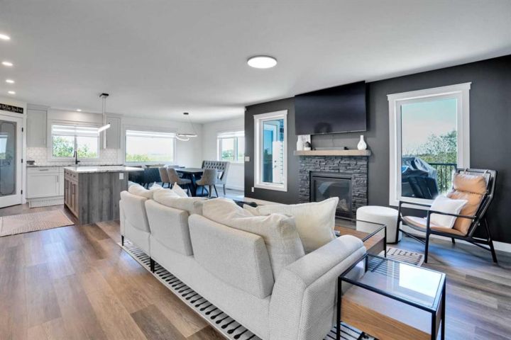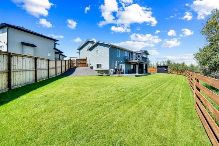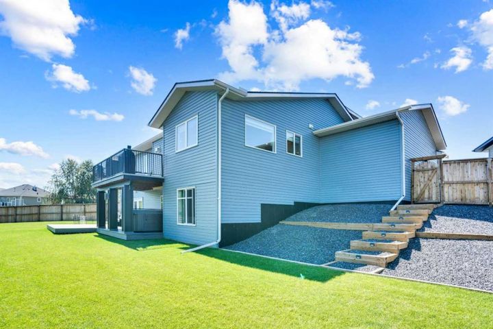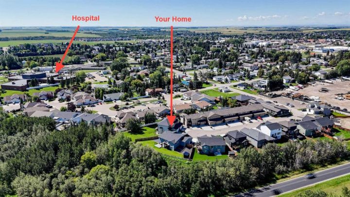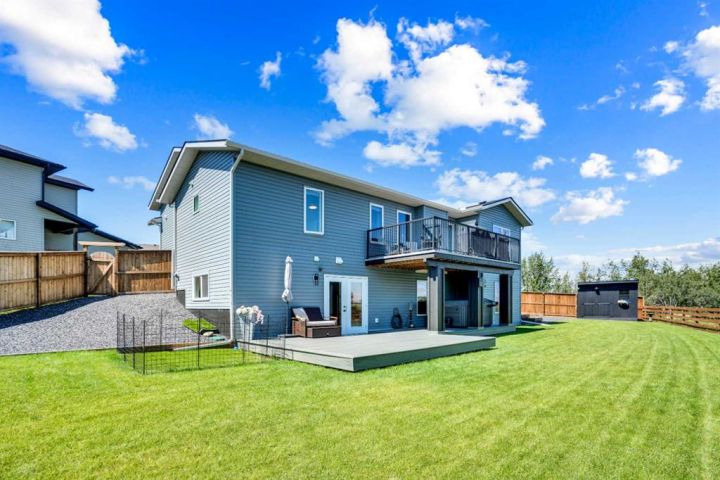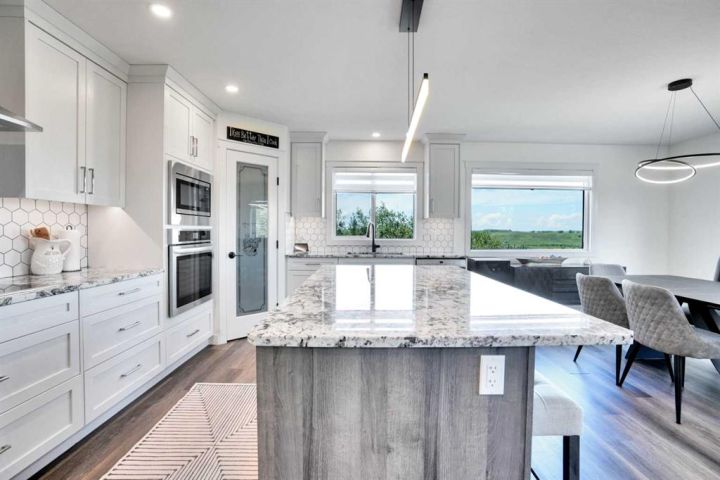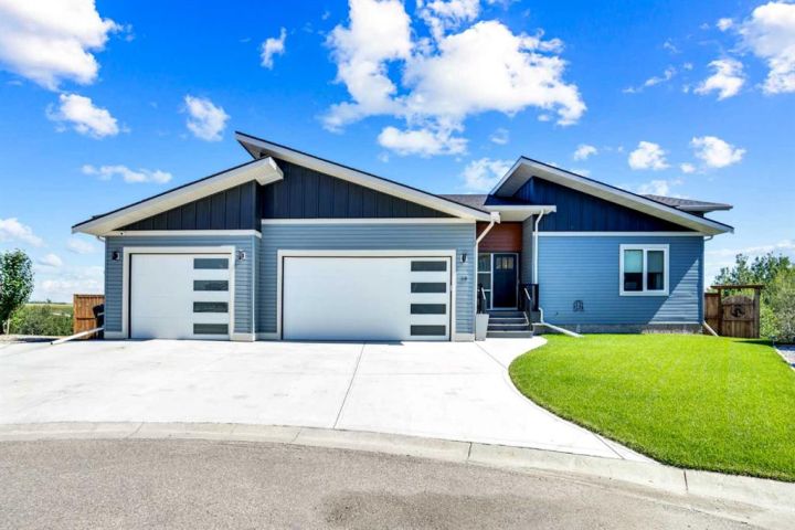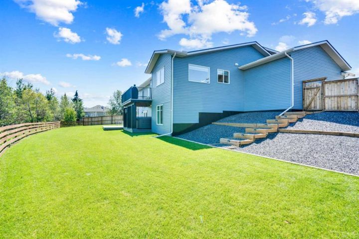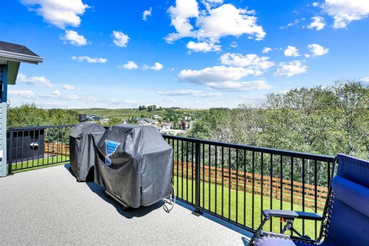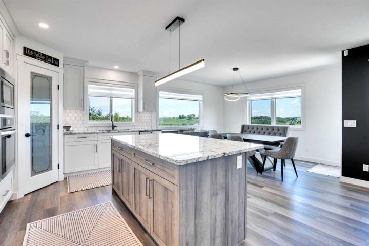 Welcome to a stunning, modern bungalow with over 2600 square feet of finished living space that feels like a peaceful retreat, backing onto a serene nature reserve. This three-year-old gem, nestled in a beautifully landscaped setting, offers the perfect blend of luxury, comfort, and low-maintenance living—ideal for retirees or growing families. Step inside to find a bright, open-concept main floor with luxury vinyl plank flooring, sleek granite countertops, and a crisp white kitchen with a corner pantry. The spacious primary suite is a true haven, boasting a generous walk-in closet and a 5-piece ensuite. A second large bedroom and additional bathroom complete the main level, perfect for guests or family. The fully finished walk-out basement is designed for relaxation and entertaining, featuring a family room with a wet bar (complete with dishwasher), massive bedrooms with ample closet space, and a 5-piece bathroom. Large windows flood the space with natural light, showcasing breathtaking views of the valley. Outside, the expansive backyard is a private oasis, framed by NEW fencing and a state-of-the-art SMART irrigation system for effortless upkeep. Enjoy morning tea on the Duradeck balcony with a gas line for your BBQ, and a NEW composite deck below, roughed in for a Hot Tub. The unobstructed views of the nature reserve make every moment feel like a getaway. Additional upgrades elevate this home to the next level: energy-efficient in-floor basement heating (which practically eliminate your heating bills come winter), central air conditioning for those hot summers, a central vacuum system, upgraded appliances, all NEW lighting fixtures, a 75-gallon hot water tank, and a brilliantly designed plumbing manifold. The triple garage offers ample space for vehicles and storage, while recently cleaned furnace and ducts ensure year-round comfort. This is more than a home—it’s a lifestyle. Thought that was enough? Home is located two blocks away from the Didsbury Hospital as well as close proximity to truly great schools and other local amenities. Experience the tranquility and luxury for yourself. Schedule your private tour today!