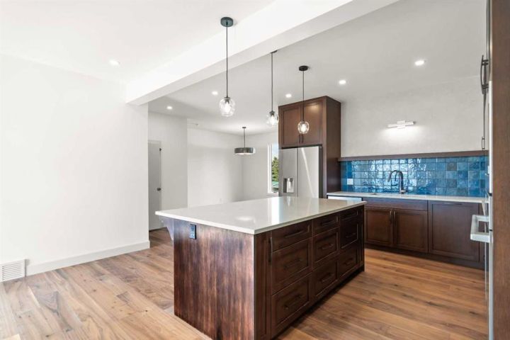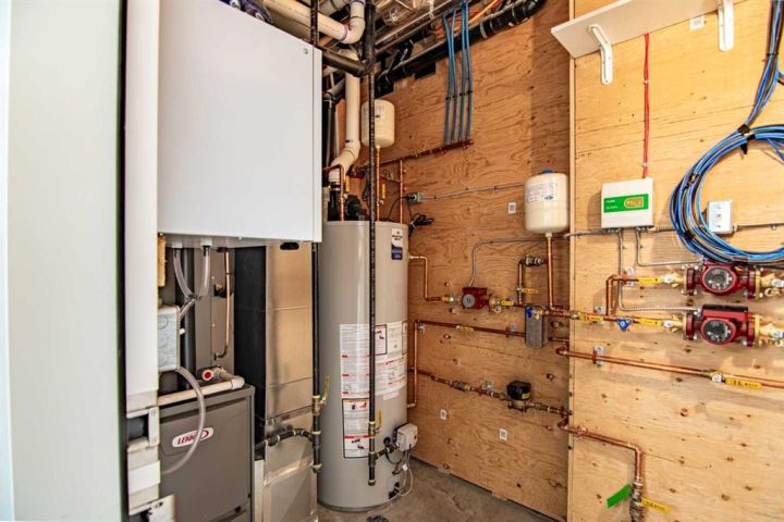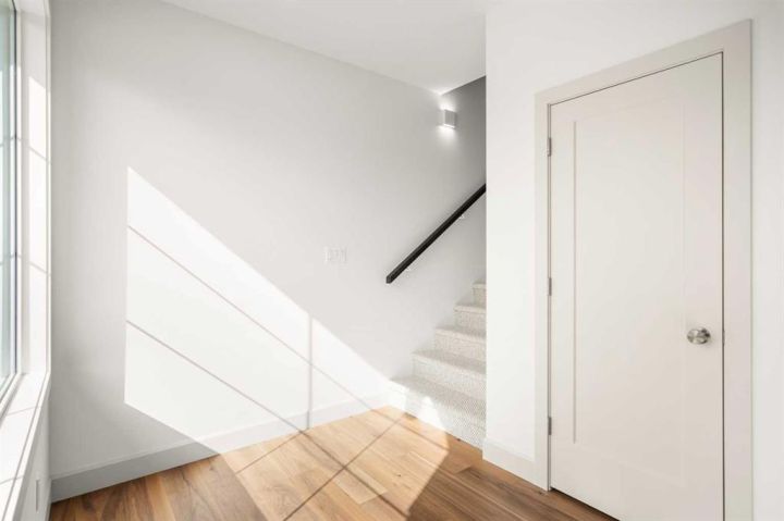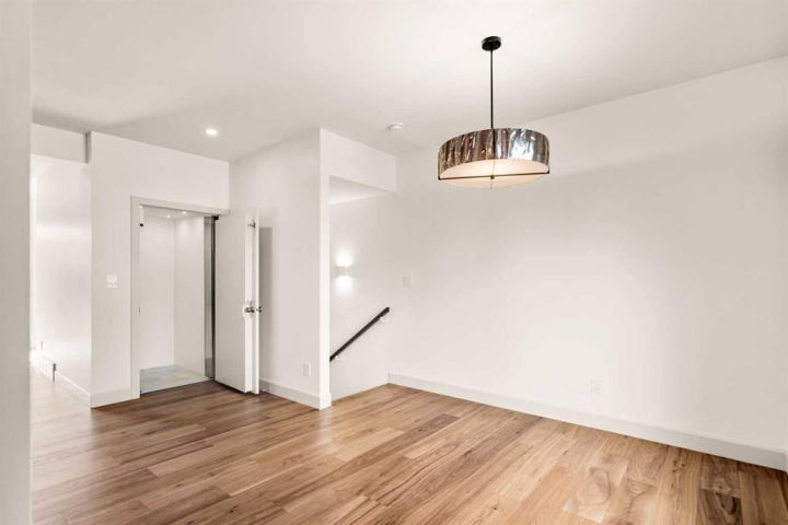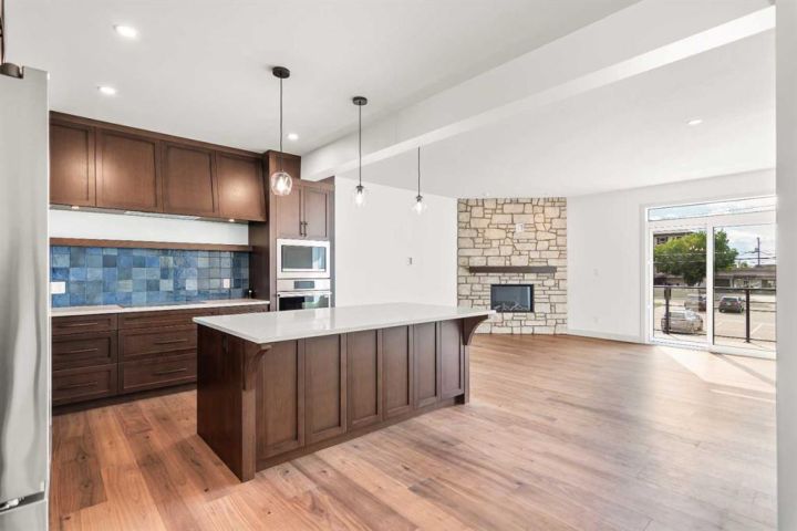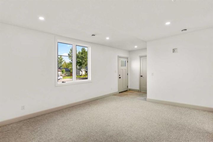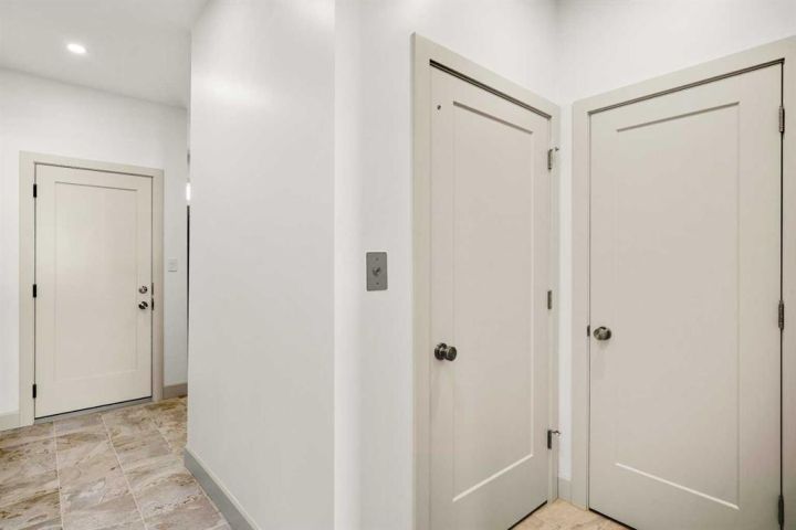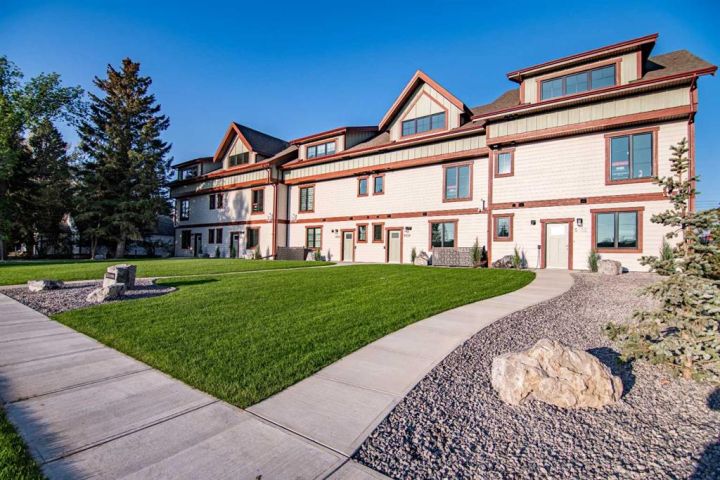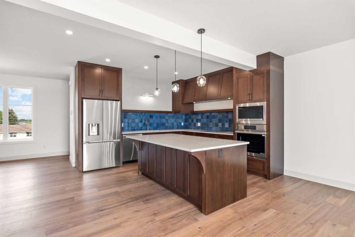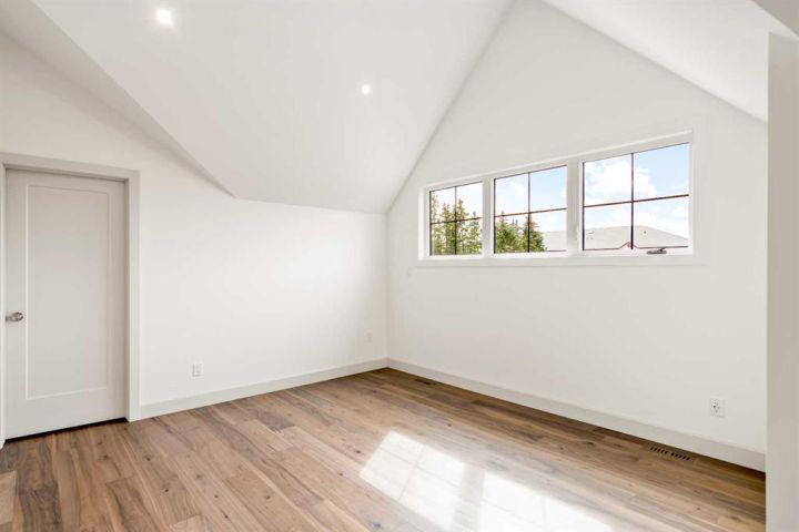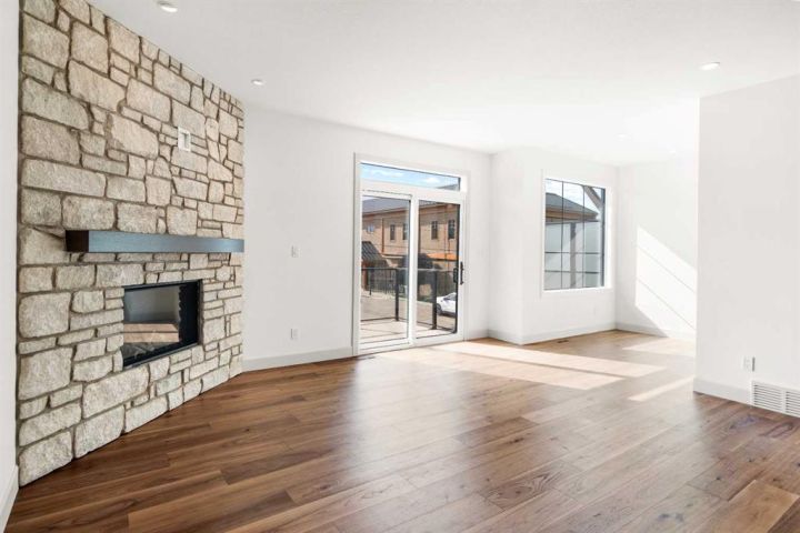 • Welcome to Edgerton Place, where comfort meets convenience in the heart of Rocky Mountain House. Nestled in the stunning foothills of the Rocky Mountains this executive new build townhome offers a modern, low-maintenance lifestyle in a prime central location—just steps from brand-new pickleball courts and within walking distance to local shops, restaurants, and everyday amenities. Step through the front door into a welcoming foyer adorned with almond slate tile, setting the tone for the refined finishes found throughout. This level features a spacious recreation room, ideal for a home office, fitness studio, or lounge, a heated-floor garage providing comfort year-round including 220V electrical, and a stylish 2-piece bath completes this flexible space. Up stairs we go to the heart of the home, where rich walnut hardwood floors flow throughout a bright and airy open-concept kitchen, dining, and living area. At the center of the living room is a gas fireplace framed in floor-to-ceiling tumbled stone, accented by a dark wood mantel — a stunning focal point and cozy gathering space. To your left, the chef-inspired kitchen features: A generous quartz island with seating and creative storage, high-end modern appliances, blue artisan tile backsplash for a bold touch, a spacious pantry and a convenient 2-piece guest bath tucked away nearby. Step outside onto your balcony, perfect for outdoor dining, relaxing evenings, or entertaining guests. The upper level is home to two luxurious bedroom suites. The primary boasts a walk-in closet and an elegant, accessible 4-piece ensuite with a roll-in shower, combining style and thoughtful design. A well-placed laundry area leads to the second bedroom, which features its own 3-piece ensuite and walk-in closet — ideal for guests or family. With a sleek modern elevator system serving all three levels, this home offers both convenience and accessibility, making it ideal for a variety of lifestyles. This thoughtfully designed townhome combines style, functionality, and location—offering the best of Rocky Mountain House living. Whether you're downsizing, or investing, Edgerton Place offers unmatched value and convenience.