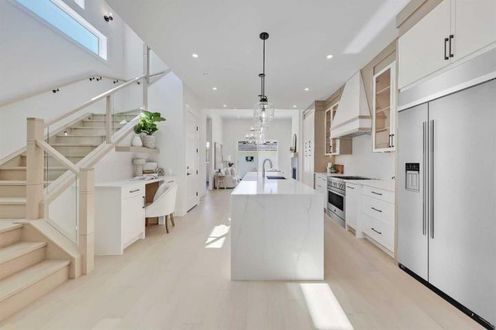 Welcome to this stunning SEMI-DETACHED infill in Calgary's highly desirable PARKDALE! Thoughtfully designed with a focus on contemporary elegance, this home blends luxurious finishes with functional living spaces, creating a sanctuary for families and professionals alike. Situated in the heart of Parkdale, this property offers unparalleled access to some of Calgary's best amenities. Within walking distance, you'll find the picturesque Bow River pathways – perfect for morning jogs or leisurely evening strolls, and every kid’s favourite Helicopter Park. Just minutes away, Foothills Medical Centre and the Alberta Children's Hospital make this home ideal for medical professionals or families seeking proximity to essential services. Families will appreciate the proximity to quality schools, including Westmount Charter School, the University of Calgary, and other top-tier public and private schools. With quick access to DT and major thoroughfares, Parkdale is the perfect blend of urban convenience and suburban charm. Every detail of this home has been meticulously curated to reflect a clean and sophisticated aesthetic. Engineered oak hardwood floors, designer tile, and high-end fixtures create a harmonious palette throughout. Unique design elements, such soaring 13FT CEILING in the great room , enhance the home’s architectural appeal. The main floor features an open-concept layout, where 10-ft ceilings and expansive windows invite natural light to pour in. A flex area at the front of the home offers the versatility of a dedicated dining room, sitting area, or even a home office setup. The gourmet kitchen is a chef’s dream, showcasing high-end appliances, a large island with a quartz countertop, and full-height custom cabinetry. The great room flows seamlessly onto a large rear deck, perfect for indoor-outdoor entertaining, with a sleek gas fireplace framed by custom millwork. Completing this level is a thoughtfully designed mudroom with built-in storage and a stylish powder room. The second floor houses 3 generously sized bedrooms, including the luxurious primary suite. The primary bedroom features a 12'6" tray ceiling, a spacious walk-in closet, and a spa-like ensuite with a soaker tub, dual vanities, and an oversized glass shower. A convenient laundry room and a beautifully appointed main bathroom round out this level. Downstairs, the fully finished basement provides your family with lots of functional and convenient options. This space offers a separate entrance and secondary kitchen – ideal for a LEGAL SUITE (approved by the city) for a mortgage helper. Alternatively, keep it for yourself and create an amazing theatre room or use it for multi-generational living! The private WEST backyard offers a serene space for relaxation and entertaining, with a double detached garage and room for outdoor dining and a play area. Call to view today!