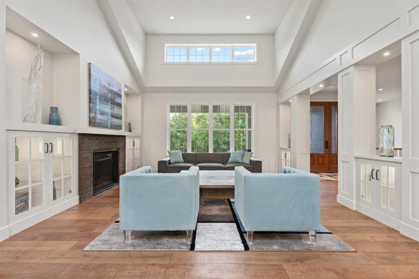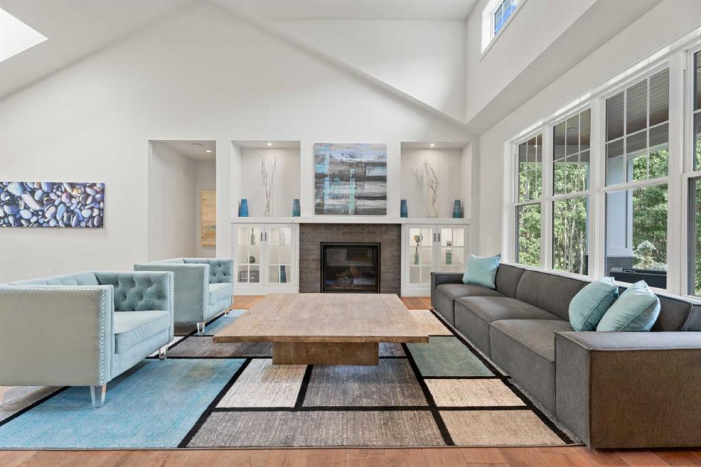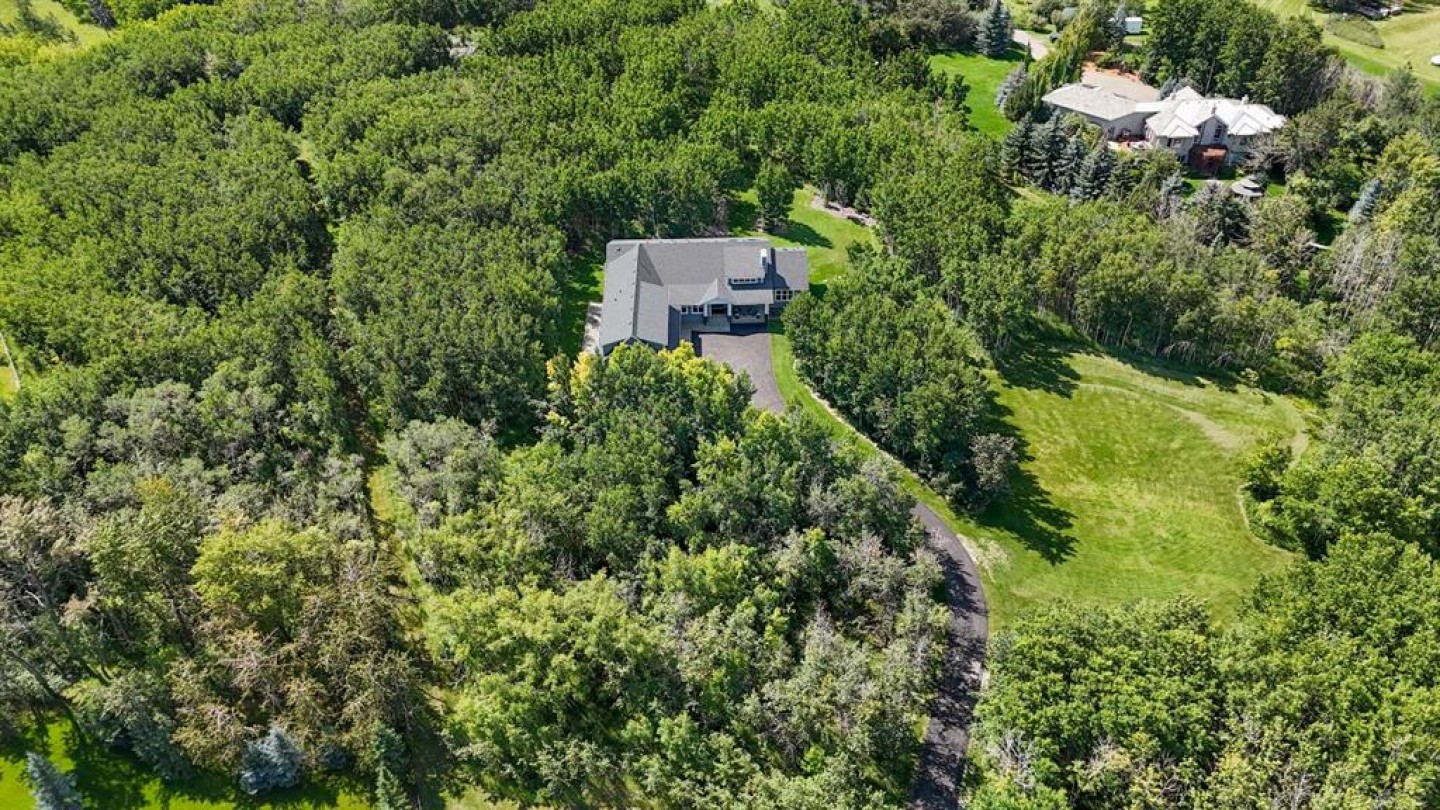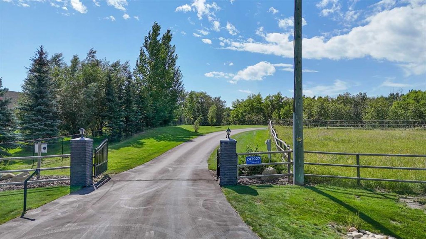 Car enthusiasts!! Set on 5.14 acres of stunning treed and open landscape, just minutes from Calgary and Okotoks, this exceptional custom-built modern farmhouse offers a rare balance of architectural refinement, privacy, and natural beauty. Designed for those who appreciate craftsmanship and quiet luxury, the home presents as a private estate—serene, elegant, and timeless. A paved, curved driveway leads to a gated entrance, introducing a picturesque setting of green space and mature trees. Inside, 17-foot vaulted ceilings and expansive windows fill the main living spaces with natural light, creating an immediate sense of openness and calm. The living room is anchored by a refined gas fireplace and custom built-ins, offering a warm and inviting atmosphere for both everyday living and intimate gatherings. At the heart of the home, a chef-inspired kitchen blends beauty and function, featuring premium Miele appliances, a substantial island with hammered stainless vegetable sink, and a concealed walk-in pantry. The adjoining dining area, enhanced by skylights, flows seamlessly onto a wrap-around deck through French doors—perfect for alfresco dining and peaceful moments overlooking the stunning views. The main-floor primary retreat is a sanctuary of comfort, with vaulted ceilings, a barn wood feature wall, and a spa-inspired ensuite complete with in-floor heating, freestanding soaking tub, walk-in glass shower, and a custom-fitted walk-in closet. A dedicated office, laundry room, and mudroom complete the main level with thoughtful functionality. Upstairs, above the garage, is a versatile bonus room with built-in bar and games area provides an inviting space for relaxation or entertaining, while two additional bedrooms with window seats share a beautifully appointed bathroom. The fully developed lower level offers a billiards area, full bar, spacious recreation room, and two more bedrooms—ideal for hosting guests. The HEATED 5-CAR GARAGE has 3 garage doors has dog wash and a work bench. With an RV hook-up, and private walking paths throughout the fully fenced property, this estate delivers elevated acreage living just moments from some of Heritage Pointe, Carmoney and Cottonwood Golf Courses plus city convenience. Contact your favourite realtor today to arrange a private showing.