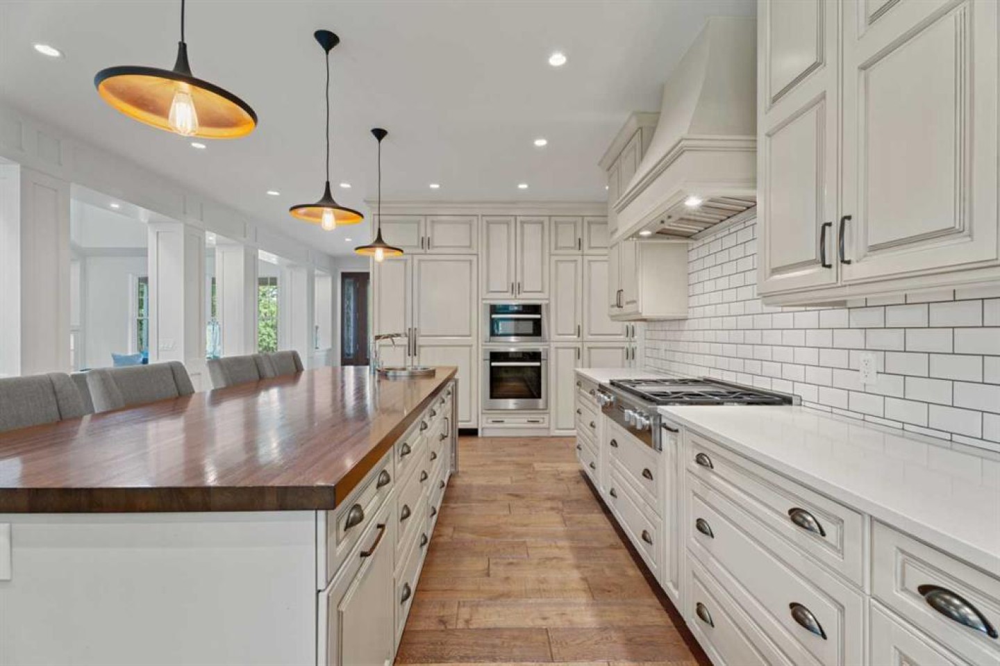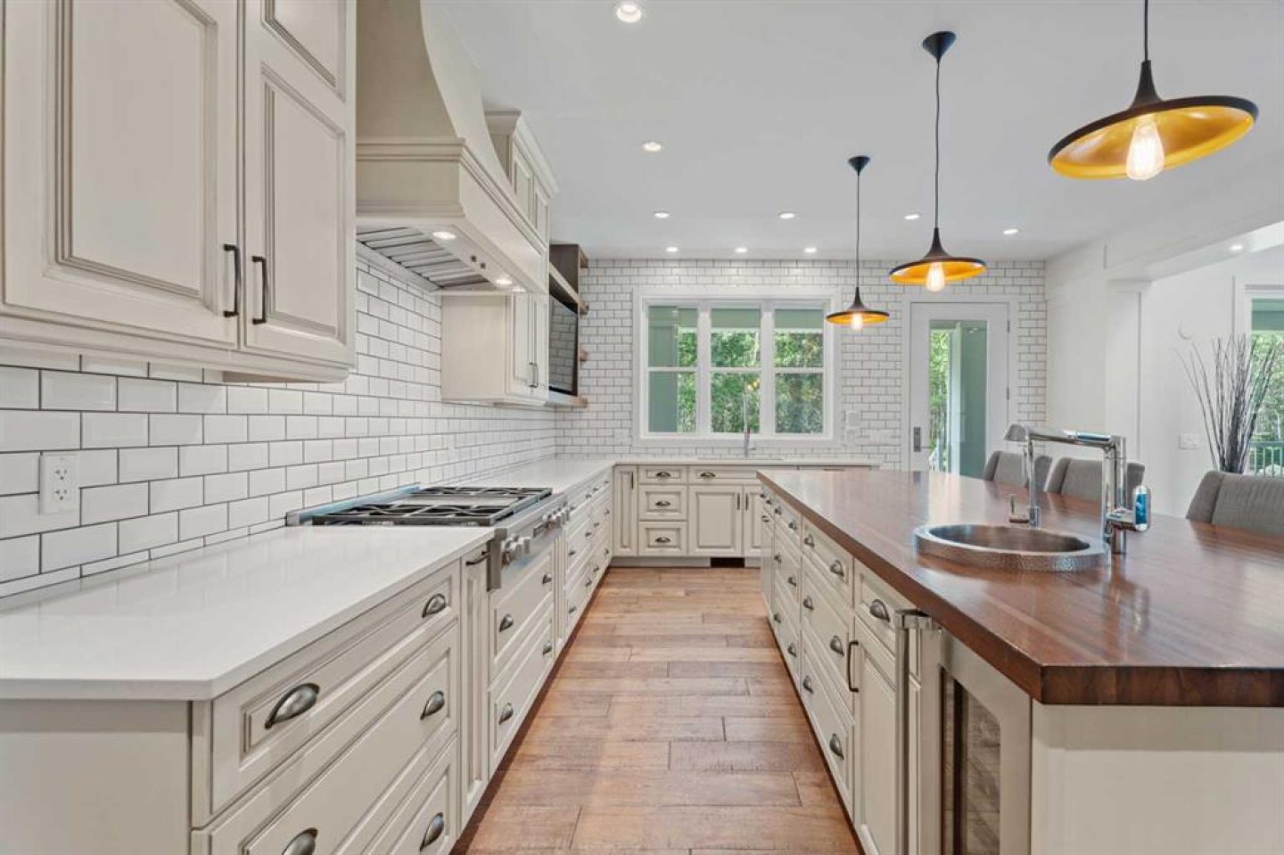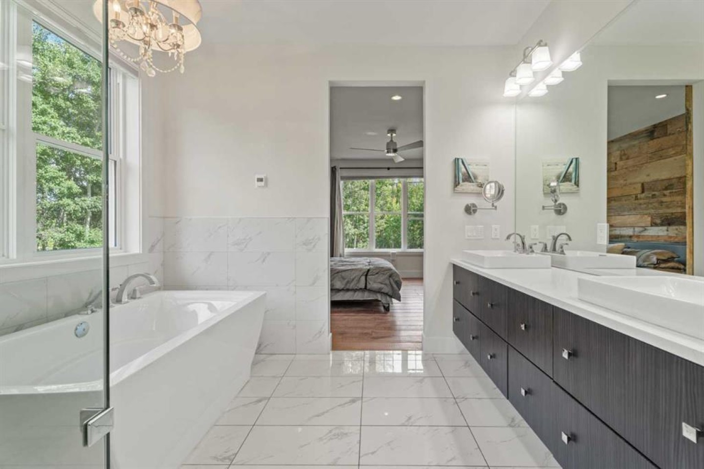Car enthusiasts!! Set on 5.14 acres of stunning treed and open landscape, just minutes from Calgary and Okotoks, this exceptional custom-built modern farmhouse offers a rare balance of architectural refinement, privacy, and natural beauty. Designed for those who appreciate craftsmanship and quiet luxury, the home presents as a private estate—serene, elegant, and timeless. A paved, curved driveway leads to a gated entrance, introducing a picturesque setting of green space and mature trees. Inside, 17-foot vaulted ceilings and expansive windows fill the main living spaces with natural light, creating an immediate sense of openness and calm. The living room is anchored by a refined gas fireplace and custom built-ins, offering a warm and inviting atmosphere for both everyday living and intimate gatherings. At the heart of the home, a chef-inspired kitchen blends beauty and function, featuring premium Miele appliances, a substantial island with hammered stainless vegetable sink, and a concealed walk-in pantry. The adjoining dining area, enhanced by skylights, flows seamlessly onto a wrap-around deck through French doors—perfect for alfresco dining and peaceful moments overlooking the stunning views. The main-floor primary retreat is a sanctuary of comfort, with vaulted ceilings, a barn wood feature wall, and a spa-inspired ensuite complete with in-floor heating, freestanding soaking tub, walk-in glass shower, and a custom-fitted walk-in closet. A dedicated office, laundry room, and mudroom complete the main level with thoughtful functionality. Upstairs, above the garage, is a versatile bonus room with built-in bar and games area provides an inviting space for relaxation or entertaining, while two additional bedrooms with window seats share a beautifully appointed bathroom. The fully developed lower level offers a billiards area, full bar, spacious recreation room, and two more bedrooms—ideal for hosting guests. The HEATED 5-CAR GARAGE has 3 garage doors has dog wash and a work bench. With an RV hook-up, and private walking paths throughout the fully fenced property, this estate delivers elevated acreage living just moments from some of Heritage Pointe, Carmoney and Cottonwood Golf Courses plus city convenience. Contact your favourite realtor today to arrange a private showing.