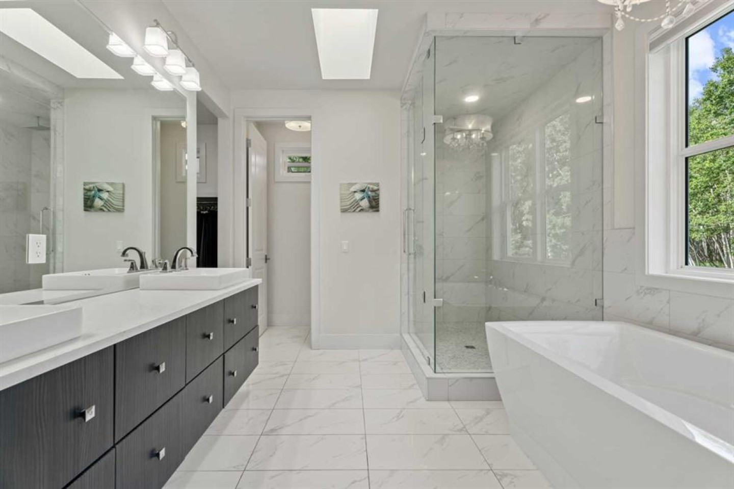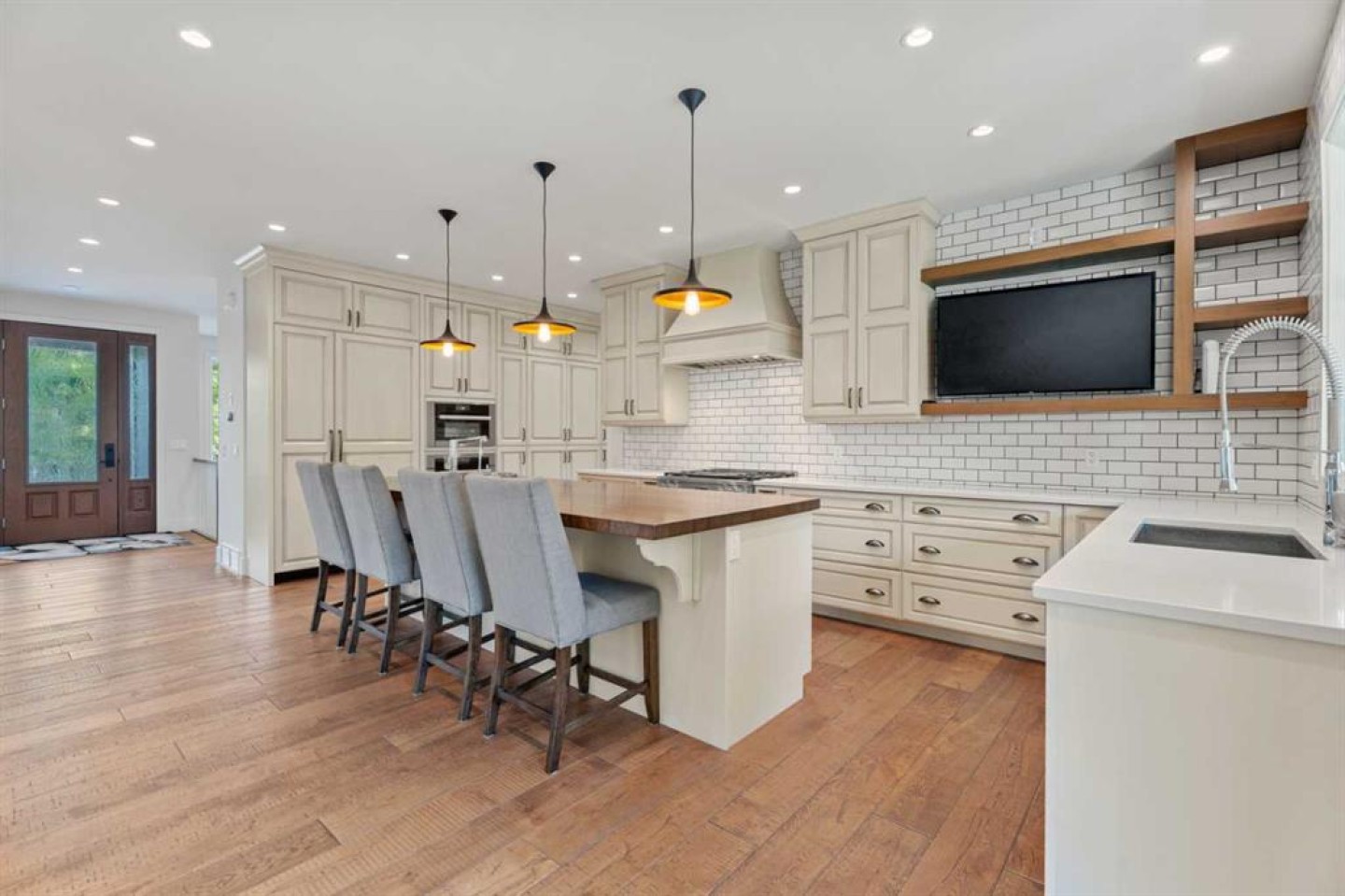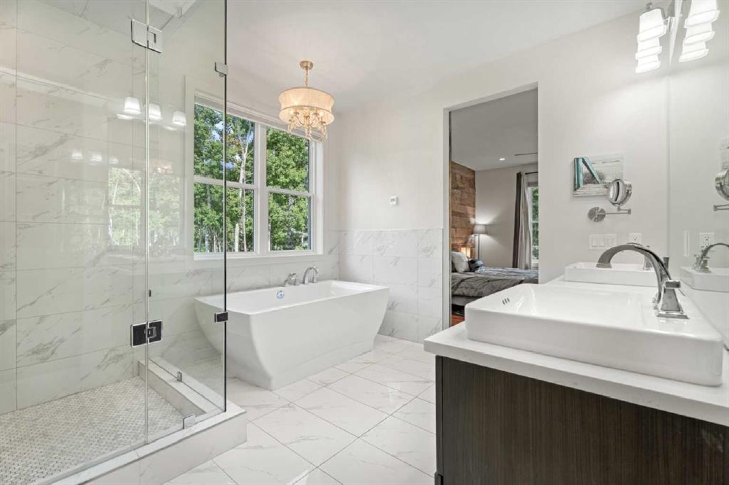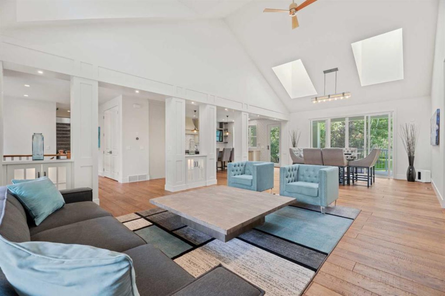 Car enthusiasts!! Set on 5.14 acres of stunning treed and open landscape, just minutes from Calgary and Okotoks, this exceptional custom-built modern farmhouse offers a rare balance of architectural refinement, privacy, and natural beauty. Designed for those who appreciate craftsmanship and quiet luxury, the home presents as a private estate—serene, elegant, and timeless. A paved, curved driveway leads to a gated entrance, introducing a picturesque setting of green space and mature trees. Inside, 17-foot vaulted ceilings and expansive windows fill the main living spaces with natural light, creating an immediate sense of openness and calm. The living room is anchored by a refined gas fireplace and custom built-ins, offering a warm and inviting atmosphere for both everyday living and intimate gatherings. At the heart of the home, a chef-inspired kitchen blends beauty and function, featuring premium Miele appliances, a substantial island with hammered stainless vegetable sink, and a concealed walk-in pantry. The adjoining dining area, enhanced by skylights, flows seamlessly onto a wrap-around deck through French doors—perfect for alfresco dining and peaceful moments overlooking the stunning views. The main-floor primary retreat is a sanctuary of comfort, with vaulted ceilings, a barn wood feature wall, and a spa-inspired ensuite complete with in-floor heating, freestanding soaking tub, walk-in glass shower, and a custom-fitted walk-in closet. A dedicated office, laundry room, and mudroom complete the main level with thoughtful functionality. Upstairs, above the garage, is a versatile bonus room with built-in bar and games area provides an inviting space for relaxation or entertaining, while two additional bedrooms with window seats share a beautifully appointed bathroom. The fully developed lower level offers a billiards area, full bar, spacious recreation room, and two more bedrooms—ideal for hosting guests. The HEATED 5-CAR GARAGE has 3 garage doors has dog wash and a work bench. With an RV hook-up, and private walking paths throughout the fully fenced property, this estate delivers elevated acreage living just moments from some of Heritage Pointe, Carmoney and Cottonwood Golf Courses plus city convenience. Contact your favourite realtor today to arrange a private showing.
