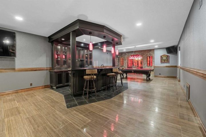 Fridge, stove, dishwasher x 2, microwave, window coverings, alarm system (no contract), washer, dryer, 5 garage door openers, 3 controls, central vac & attachments, coffee maker, tv wall mounts, projector, screen, amp, dvd player, theatre room furniture, 6 beverage fridges, tire rack, sonos, bbq, pool table & accessories, tv's in bar/ games area.
