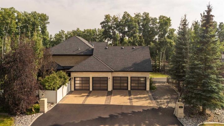 Executive two-storey home, complete with an attached 4-car garage and a 4-car heated shop, is perfectly situated in the sought-after community of Jarvis Bay Country Estates.Designed with exceptional craftsmanship &driveway,striking stone accents & impeccable landscaping create unmatched curb appeal.The grand front entry has soaring 18’ ceilings adorned with an impressive chandelier.The curved staircase finished w/rich wood wainscoting & wrought iron railings offers a dramatic welcome.The formal dining room,complete with a built-in bar provides the perfect setting for dinner parties & family gatherings.The chef’s kitchen is a true masterpiece—ceiling-height custom maple cabinetry,granite countertops,a massive island w/prep sink,crown mouldings,full decorative tile backsplash & a premium appliance package including Thermador and Miele.No detail has been overlooked,from the pot filler and double ovens to the built-in cappuccino machine.The sun-filled breakfast nook and adjoining sitting area w/gas fireplace flow seamlessly into the sunroom and backyard oasis.The great room is designed to impress with its dramatic 18’ ceilings,crown mouldings,a full wall of windows framing the private backyard & a stunning wood-burning fireplace accented with stacked stone and maple detailing.A private office with custom built-ins provides the perfect work-from-home space.The primary suite is a luxurious sanctuary featuring coffered ceilings,a private den w/fireplace & wet bar,and a spa-inspired ensuite with heated floors,dual vanities,Makeup Station,custom glass shower w/dual heads & body jets & a dream walk-in closet w/glass shoe displays,maple millwork & a large centre island.The upper level showcases a lofted view to the great room,2 spacious bedrooms,2 bathrooms (including one ensuite) & double doors leading to a fully soundproofed,two-tiered home theatre with custom millwork,wet bar,and pillars creating an unparalleled cinematic experience.The fully developed lower level continues to impress with a 4th bedroom & ensuite,expansive rec area,wet bar,poker and billiards spaces,a one-of-a-kind stone-clad wine room, bonus rm/gym (currently being used as a nursery),& even a men’s bathroom with urinal—every detail thoughtfully designed and all warmed by underfloor heat.Outdoor living is elevated with a massive 2-tiered composite deck,partially covered for year-round enjoyment overlooking the meticulously landscaped ¾-acre lot.Entertain fireside at the built-in outdoor stone fireplace & enjoy the convenience of a private outdoor 2pc bathroom.Mature trees,raised stone flower beds,aggregate walkways,underground sprinklers & full vinyl fencing ensure both beauty and privacy.Car enthusiasts & hobbyists will appreciate the heated 25x26 4-car shop w/vaulted ceilings,220V wiring,underfloor heat & integrated sound.The attached 23x24 garage offers epoxy floors & dual bays.No expense was spared in this one-of-a kind estate.