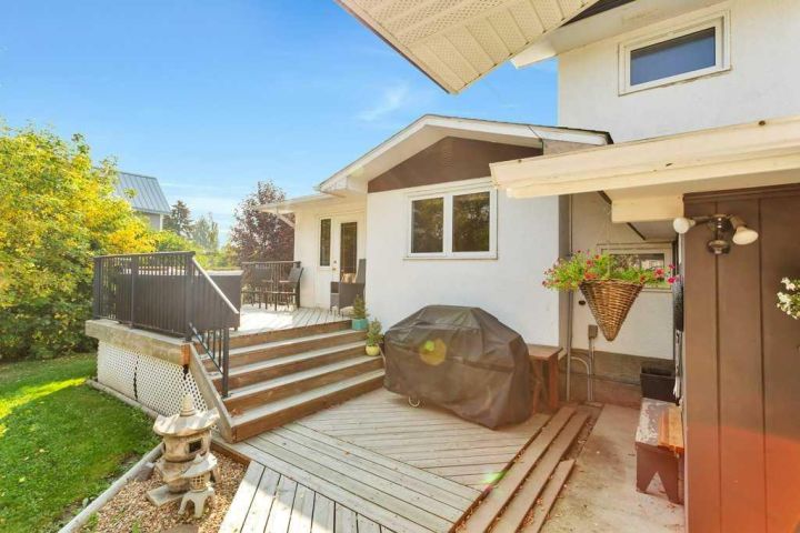 Nestled just steps away from schools, the arena, and historic downtown Lacombe, this inviting home offers the perfect combination of mid-century charm and thoughtful, modern updates. From the moment you arrive, you’ll appreciate the curb appeal and care that’s gone into maintaining this property over the years. Inside, you’ll be greeted by the warmth of REFINISHED ORIGINAL HARDWOOD FLOORS and classic MAHOGANY doors and trim, which showcase the character of this 1961 home. Built-in shelving and drawers in the dining area add personality and extra storage while keeping that mid-century feel. The kitchen is light and bright with plenty of cabinets, a dedicated pantry cupboard, and a window over the sink that frames views of the mature, private yard. HEATED TILE FLOORS in the kitchen and lower entry make this space feel extra cozy during Alberta’s cooler months! This home is spacious, offering 5 BEDROOMS and 2 BATHROOMS, making it ideal for growing families. Three bedrooms are found on the upper level along with a full bath (easily updated to include a shower if desired), while the lower levels provide two additional bedrooms, a second full bathroom with a TILE SHOWER, and a generously sized family room — perfect for movie nights, kids’ play space, or a home gym. Over the years, LIGHTING, ELECTRICAL, AND MECHANICAL SYSTEMS have been upgraded, along with NEWER WINDOWS & DOORS, ROOF, DECK & RAILING, EAVES (2024), NEWER APPLIANCES (approx. 5 yrs) NEW INSULATION and even a NEW SEWER LINE with BACKFLOW VALVE, so you can enjoy a home that’s been cared for from top to bottom. Step outside and take in the impressive 75’ x 160’ LOT! There’s room to park an RV or boat, space for kids and pets to play, and even room to garden or add outdoor features if you wish. The oversized 32’ x 26’ DETACHED GARAGE is only 15 years old and offers a 10’ DOOR for trucks or toys, plus a gas line for future heat. Thoughtful design means the garage overhang keeps rain and snow off the walkway between the garage and the house, making winter days a little easier. The home also has a LONG DRIVEWAY and CARPORT along the side — great for multiple vehicles. The current owners considered converting the carport area into a sitting room or sunroom, giving the next owners a chance to create a beautiful transition space between indoors and outdoors. The yard is PARTIALLY FENCED with a tall privacy fence on the one side, and the garage is perfectly positioned — creating a private backyard retreat. Enjoy warm summer evenings around the FIREPIT, or entertain friends on the LARGE DECK just off the dining room. This is a home that truly offers the best of both worlds — vintage charm, modern comfort, and a location that’s hard to beat. Surrounded by other character homes on a quiet, friendly street and just a short stroll to Lacombe’s downtown shops, cafes, schools, and recreation, you’ll love being part of this welcoming community. All that’s left to do is move in and enjoy!