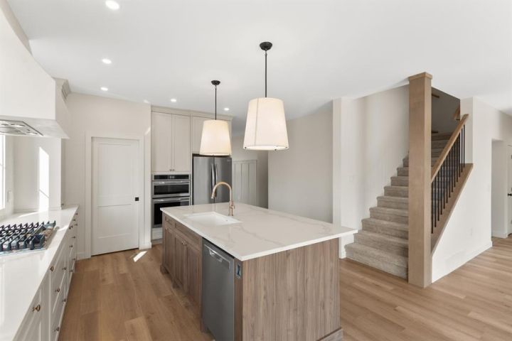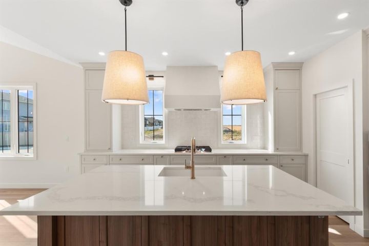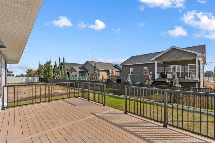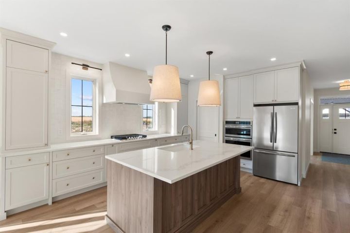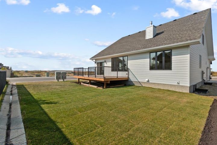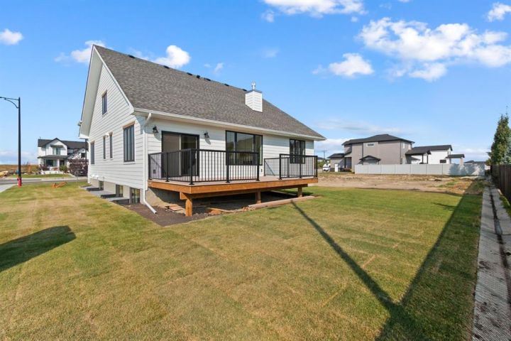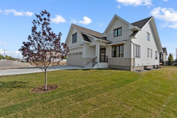Introducing a beautifully designed, farmhouse-inspired home offering 2,569 square feet of comfortable, modern living. This open-concept residence features four spacious bedrooms and three full bathrooms, providing ample space and privacy for families or guests. Thoughtfully crafted for today’s lifestyle, this home includes a functional layout with timeless appeal. Step into the bright, open kitchen, complete with a custom hood fan, centre island, and a walk-in pantry—a perfect blend of style and practicality. The space is elevated by a variety of custom light fixtures and wall sconces, adding warmth and character throughout. The vaulted ceilings in the dining and living room area create an airy, expansive feel, making it ideal for both entertaining and relaxing. A cozy fireplace with a wood mantle and built-in shelving adds a custom touch and serves as the heart of the living room. The main-floor master bedroom offers a private retreat, featuring a gorgeous ensuite with a double vanity, soaker tub, and glass shower—all designed with luxury and comfort in mind. A huge walk-in closet conveniently connects to the laundry room, enhancing everyday functionality. One of the additional bedrooms offers flexibility to serve as a custom home office, perfect for remote work or study. A large bonus room upstairs provides extra space that can be tailored as a playroom, entertainment area, or a quiet retreat to suit your needs. Located in the charming town of Olds, Alberta, this home combines the best of rural serenity with modern amenities. Known for its friendly community, scenic landscapes, and rich agricultural roots, Olds offers a slower pace of life while still providing access to nature, quality schools, and vibrant local events. Don't miss this opportunity to enjoy the perfect blend of custom charm, functionality, and lifestyle in a home designed for today’s modern family. Call today to book your private tour!!