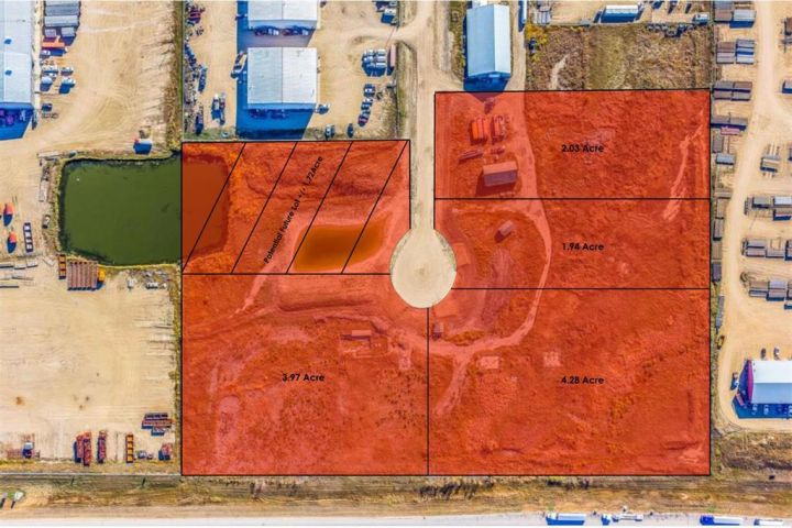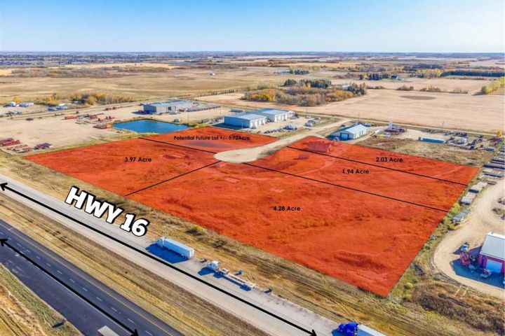 Prime Industrial Development Land – +/-12.22 Acres with Highway 16 Frontage Exceptional opportunity just 1 km west of Lloydminster! This +/-12.22-acre parcel is fully subdivided into 4 titled lots (with potential for a fifth +/-1.72 acre lot after annexation) and offers 8.25 acres of highway frontage for maximum visibility. Development groundwork is already complete: executed development agreement, paid road & County of Vermilion contributions, completed studies & drawings, gas installed to each lot, road approaches finished, and trees/unused lines cleared. What’s left? Power installation, lot leveling, and pond excavation—with clay already onsite for fill. With unbeatable exposure, subdivision flexibility, and extensive prep work done, this property is ready for your next industrial or commercial project.