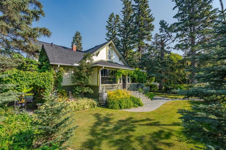 Welcome to one of High River’s most iconic homes-a timeless 1940 Craftsman-style beauty nestled on a rare double corner lot. Just a short stroll from the charming downtown, this heritage property has been thoughtfully & extensively renovated, with a substantial addition completed in 2021 that blends seamlessly with the original architecture. With over 4,100 square feet of developed living space, this home offers the perfect balance of historic character & modern comfort. Every detail of this renovation was done with care, preserving the charm of the original structure while elevating the home with contemporary upgrades. At the heart of the home, you’ll find a custom-designed kitchen surrounded by rich millwork, exposed brick, & sun-filled living spaces. The cozy living room, complete with a gas fireplace & period-inspired detailing, invites you to unwind & enjoy the character that only a home of this vintage can offer. One of the most remarkable features of the addition is the use of 120 year-old Douglas Fir hardwood flooring, sourced to blend perfectly with the original hardwood-a detail that speaks to the exceptional craftsmanship & care taken in every element of this renovation. The home features 3 bedrooms and 4.5 beautifully finished bathrooms. The primary bedroom is a true retreat, offering peaceful views & convenient access to the back of the property. The ensuite is luxurious & functional, with heated tile floors, a double vanity & a large tiled walk-in shower. Off the generous walk-in closet, you'll find a conveniently located laundry area. A standout feature is the expansive loft space, with soaring vaulted ceilings, offering endless potential—whether used as additional bedrooms, a home office, or private gym. The fully developed basement includes another inviting living area, a wet bar for entertaining, a second gas fireplace, & ample room to relax or host guests. Outside, the property truly shines. Mature trees, lush gardens, & curated landscaping create a sense of privacy & peace, like your own private park. A heated koi pond adds a tranquil touch & the wrap around covered porch provides the perfect place to sit & enjoy the surrounding beauty.The saltwater hot tub provides a luxurious way to unwind, while the whimsical “She Shed” in the garden offers a quiet retreat. The stunning legal carriage suite is located above the triple detached garage. Just under 700 sq ft, cathedral ceilings, a full bathroom, huge balcony, & oversized windows that flood the space with light, this one-bedroom legal suite feels like a peaceful sanctuary-ideal for guests, extended family, or tenants. Schools & the hospital are nearby, making this home as practical as it is picturesque. Whether you're seeking a quiet lifestyle, small-town charm, space to grow, or a truly unique & character-rich place, this home offers something extraordinarily special. Residences like this rarely come to market—it’s a piece of High River history lovingly restored & ready for its next chapter.
