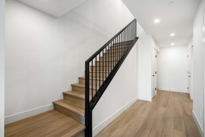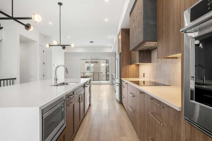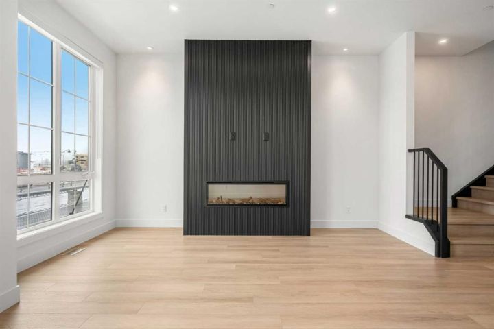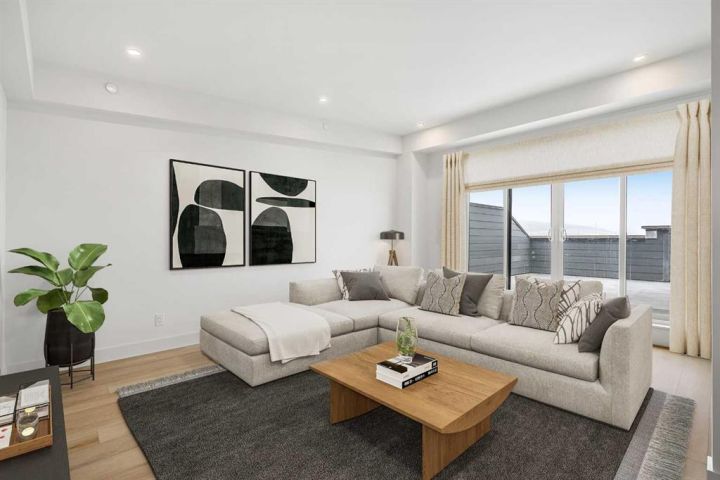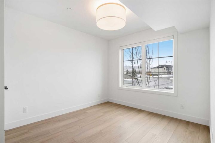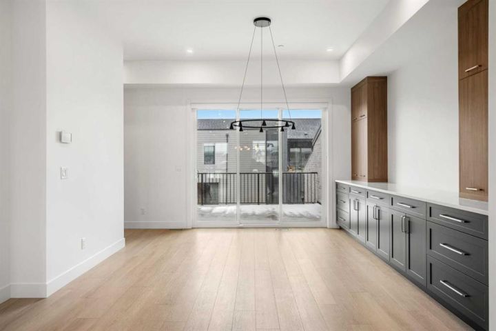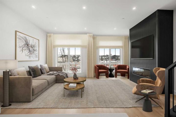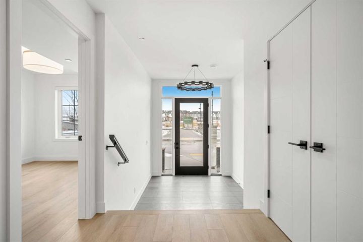 Welcome to 16 Greenwich Heath NW, a one-of-a-kind, four-story Modern Brownstone meticulously crafted by Partners in the new NW community of Upper Greenwich. As Calgary’s only Modern Brownstone fronting a canal, you’ll wake up to the gentle flow of water, surrounded by tranquility and breathtaking views. Blending the timeless elegance of classic 19th-century brownstone architecture with modern sophistication, this no-condo-fee residence showcases unparalleled craftsmanship and an unbeatable location, just steps from the Bow River and Calgary Farmers’ Market West. Currently under construction, it also gives you the rare opportunity to collaborate with an award-winning designer, allowing you to select finishes and add your own personal touch while being guided to create a home that is uniquely yours. Every detail reflects Partners’ reputation for quality, with standout features including a private elevator, rooftop patio, and an oversized heated rear-attached double garage. The expansive foyer opens to a versatile office or bedroom, a full bathroom, and a mudroom, while the main living level is an open-concept showpiece with 10’ ceilings, oversized windows, a chef-inspired kitchen, spacious dining area, elegant living room anchored by a fireplace, and a rear deck with enclosed storage. A powder room with floating vanity completes this floor. Upstairs, the primary suite feels like a retreat, offering a spa-inspired ensuite with in-floor heating, dual vanities, a fully tiled glass shower, and a freestanding soaker tub. Two additional bedrooms, a full bathroom, and a well-planned laundry room complete this level. The fourth floor is dedicated to entertaining, with a wet bar, beverage fridge, and access to a private rooftop patio with a hot tub rough-in, where you can take in the serene water views. Designed with cutting-edge mechanical systems for efficiency and year-round comfort, this residence is perfectly located within Upper Greenwich, a master-planned community that balances beauty and functionality. With walking paths, sports courts, playgrounds, and nearby shops and restaurants, plus WinSport at your doorstep and the Rocky Mountains just 45 minutes away, Upper Greenwich offers a vibrant, urban, walkable lifestyle paired with endless recreation. A truly one-of-a-kind home, ready to be made your own.