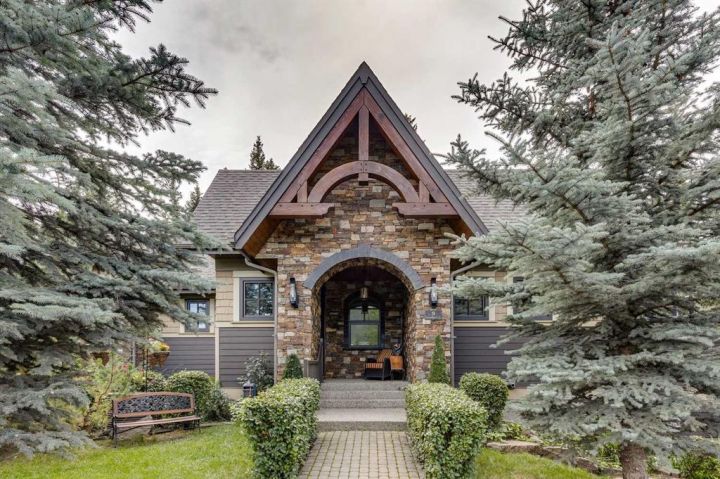 Located on an exquisitely landscaped 3/4-acre lot backing directly onto the serene waters of Heart Creek, this property is truly a Mountain Oasis. Offering over 3,450 sq. ft. of meticulously designed living space, this walkout bungalow is a rare opportunity to experience refined mountain living without compromise. Crafted by the award-winning builder Laratta, this residence is a testament to timeless quality and thoughtful design. From the moment you step inside, you are greeted with an atmosphere of warmth and sophistication, where every detail has been carefully curated. Rich stone floors and natural hardwood flow seamlessly throughout, while extensive custom millwork and wall paneling create a sense of enduring elegance. The gourmet kitchen is the heart of the home, showcasing bespoke cabinetry, high-end Miele built-in appliances, and generous counter space for both entertaining and everyday living. Expansive windows frame breathtaking mountain views, flooding the home with natural light and bringing the outdoors in. Anchored by a striking solid wood staircase, the interior also features three fireplaces—one wood-burning and two gas—that create cozy gathering spaces for family and friends. This home offers four spacious bedrooms, providing plenty of room for family, guests, or a private office. The lower-level walkout is ideal for entertaining or quiet relaxation, seamlessly extending to the outdoors. The large three-car tandem garage includes a convenient dog wash, catering to both functionality and lifestyle. The exterior is equally impressive, blending traditional mountain architecture with authentic stone, timber accents, and maintenance free Hardie board siding. The result is a home that feels as though it naturally belongs in its breathtaking setting. Perfectly positioned in the peaceful hamlet of Lac Des Arcs—just 8 minutes east of Canmore—this retreat offers the tranquility of a mountain getaway while maintaining quick, convenient access to all the amenities of Canmore and Calgary. Here, you enjoy the very best of both worlds: serenity without isolation, luxury without pretense. This is more than a home—it is a sanctuary. A place where nature, comfort, and craftsmanship converge. If you’ve been seeking a mountain residence that embodies peace, beauty, and timeless quality, look no further. Do not miss the opportunity to view this masterpiece.