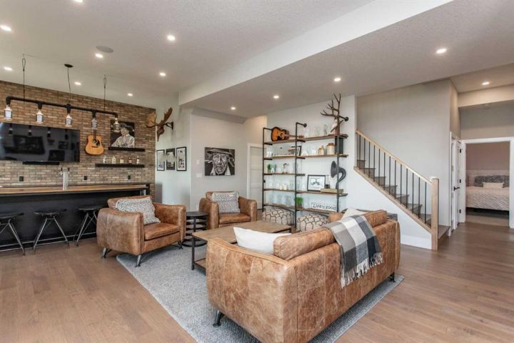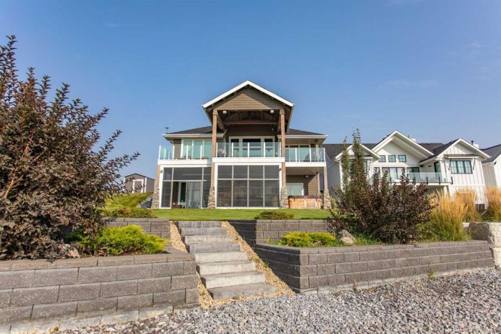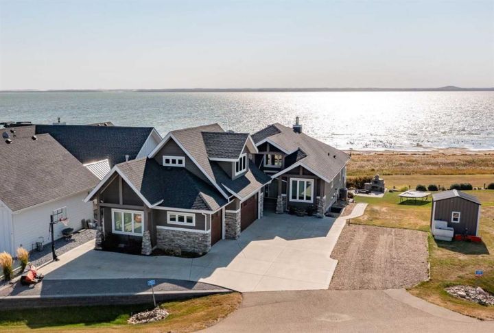 Wake up to picturesque views of Buffalo Lake, spend your afternoons relaxing on the beach or in the water, and unwind by the fire as the sun sets over the shoreline—this is lakeside living at its finest. Designed for those who crave connection, comfort, and a touch of luxury, this modern home blends effortless main-level living with exceptional indoor–outdoor spaces. Whether you’re raising a family that loves to play by the lake or desire a summer home, this property delivers in every way! Experience the beautiful community of Pelican View Estates. This tastefully designed and beautifully built Larkaun Home home is absolutely stunning! The main floor welcomes you with an open, airy layout that frames unforgettable views of Buffalo Lake. Soaring ceilings and ample windows that bring the outdoors in, gorgeous hardwood and tile flooring with a beautiful patio off the dining area. The chef-inspired Kitchen with quartz counters is built for entertaining, complete with a coffee/cooler bar and a walk-through pantry for easy organization. The Primary Suite is bright and welcoming with gorgeous views and access to the upper balcony, a spa-like Ensuite, large walk-in closet, and direct access to the Laundry Room—everything you need on one level. A main floor Den makes an ideal home office or quiet retreat. The bonus room upstairs is great for a recreation space and cozy movie nights. It sits above the oversized triple Garage that provides plenty of room for vehicles, lake gear, and storage. The walkout lower level is made for gathering—featuring an impressive wet bar, a sunroom that connects to the hot tub area, and three comfortable Bedrooms. Two share a Jack and Jill 5-piece Bath, while the third is next to a full Bath—perfect for hosting guests with privacy and comfort in mind. This level extends your living space, opening directly outside for patio and beach access. Outside, enjoy steps-to-the-water access, a firepit for evening campfires, and sweeping views that make this one of the most desirable spots on the lake. Whether it’s sunrise coffee on the balcony or sunset by the shore, this home captures the essence of modern lakeside living.