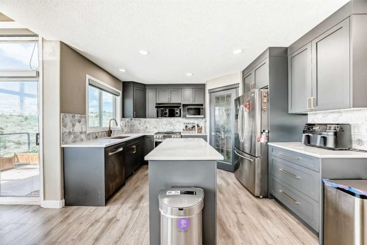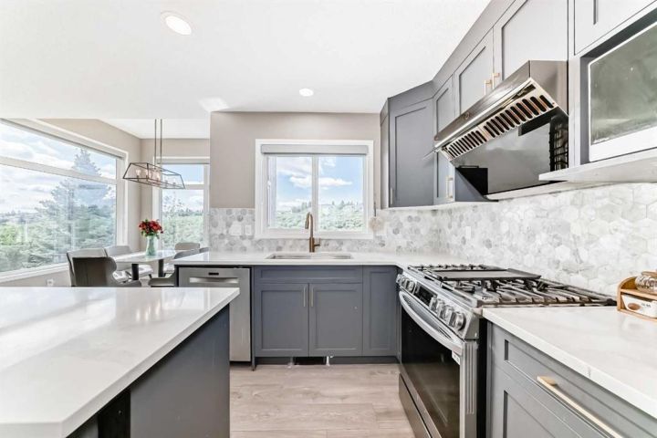 Rare!!! the beautiful renovated home in Edgemont with rare view of the RAVINE! this beautifully maintained home features newer flooring throughout the main floor,offering a bright, open and spacious layout. A dedicated den on the main floor provides the perfect space for working from home. massive windows in living room, kitchen, and dinning area, filled with natural light, let you enjoy the ravine. Renovated kitchen with stylish quartz countertops, newer gas stove. Step out from the dinning area onto the deck and take in the stunning views of the ravine. curved staircase to the second level, you will find a spacious primary bedroom with a generously size ensuite, along with two additional bedrooms, each offering excellent space and comfort. the fully developed walkout basement adds valuable living space and flexibility for your family's needs. South-facing backyard is perfect for relaxing.washer/dryer 2024, gas stove 2024, hot water tank 2024, roof 2025