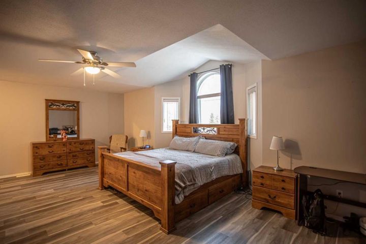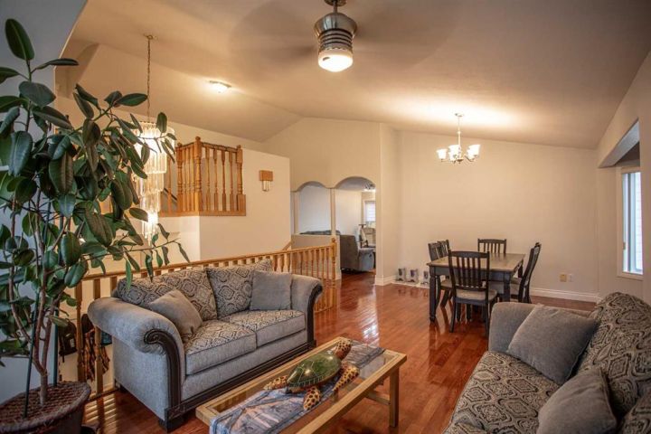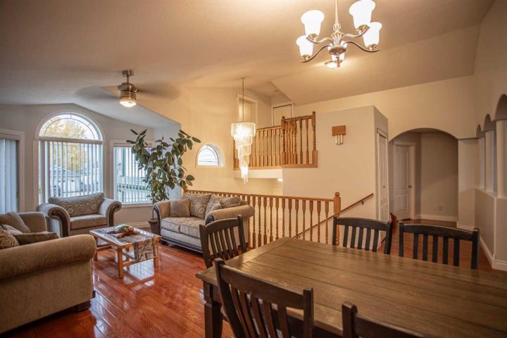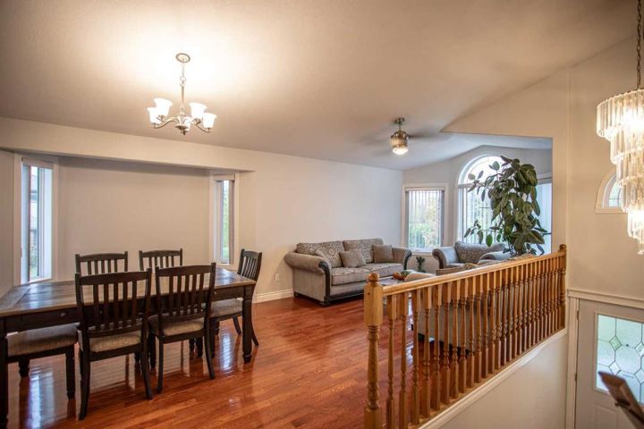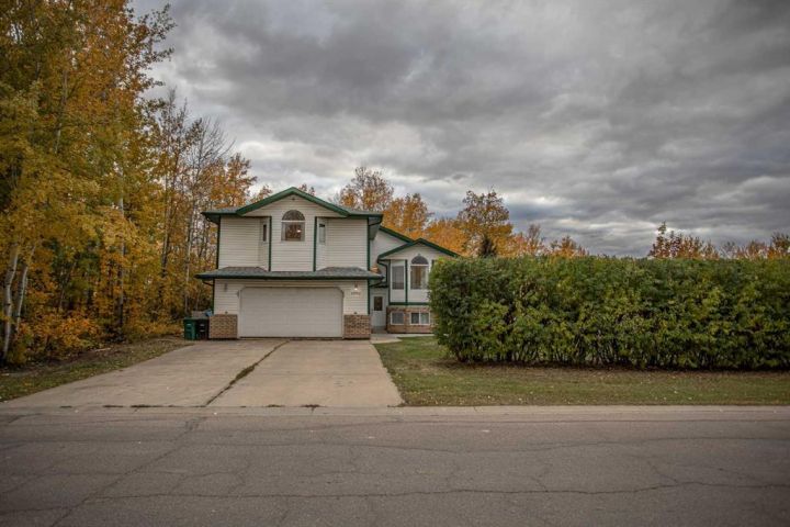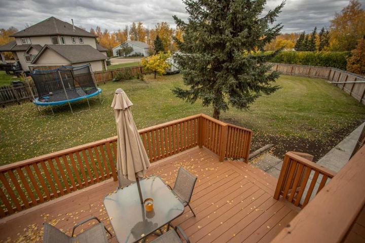 HUGE PRICE ADJUSTMENT!! A Stunning home with lots of space and privacy, nature at your fingertips mere steps from the back door. With 3 parks within walking distance this home is in a great location! It's truly the "creme de la creme" of homes! You will be proud to drive up to this distinguished home boasting over 1900 sq. ft. of main floor living space with a walk-out basement. A spacious tiled foyer with soaring vaulted ceiling welcomes you to a bright sun-filled Living Room that showcases a bay window ensuring an abundance of natural light to filter in on the gleaming hardwood flooring. The statuesque pillars showcase the ultimate Formal Dining Room with a handsome tiled fireplace, offering a cozy ambiance on the cooler evenings. Delightful South-western evening sun streams into the beautiful Kitchen, which is dressed in wood cabinetry and boasts a generous amount of counter space, stainless steel appliances, and plenty of cupboards and pantry space. The garden door opens to a fabulous new two-tier deck to enjoy a late evening dinner party under the Northern skies, or to relax and listen to the birdsongs echoing from the backdrop of the majestic trees. The fully fenced 1/2 acre yard is perfect for your little ones, and 4-legged family members. On the east side of the home you will find 2 GREAT sized Bedrooms and the main bath with a tub/shower combo. Quietly tucked away a few stairs up is the MOST AMAZING Primary Suite that offers a walk-in closet and en-suite. The lower level sports another 2 fantastic Bedrooms , 4 pc Bathroom, a MASSIVE storage area, and Laundry Room. Just add some flooring to the huge Family Room, and it'll be the ideal place for teen hang-outs, and family movie nights. Did we forget to mention the attached heated garage, central air, and infloor heat ? This STUNNING home awaits your arrival .