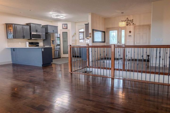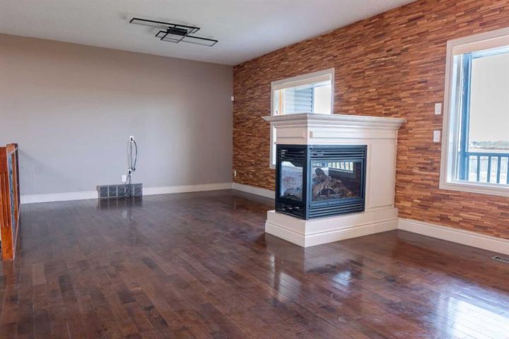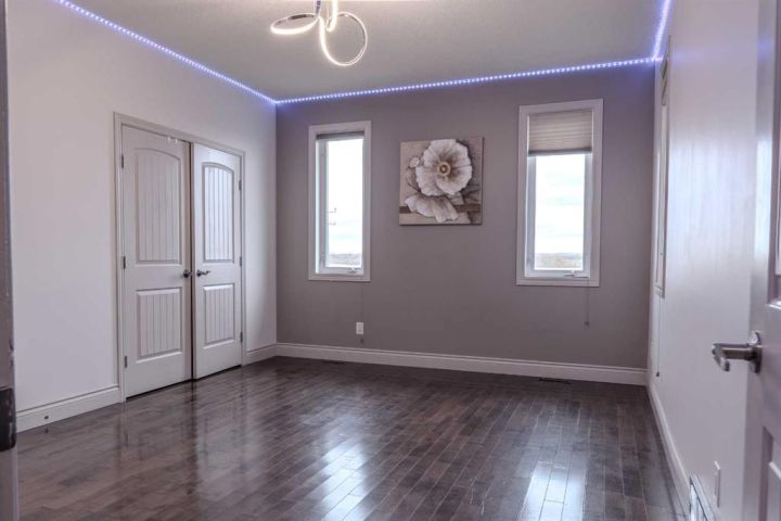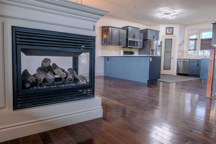 Welcome to this beautifully maintained raised bungalow in Crystal Lake, backing onto a pond with serene country views. From the moment you arrive, the stunning stone-accented exterior and double attached heated garage set the tone for the quality you’ll find throughout this home.Inside, you’re greeted by a wide open floor plan filled with natural light from oversized windows. The spacious living room showcases a 3-sided fireplace and feature wall, creating the perfect Center-piece for family gatherings. Patio doors lead to a covered east-facing deck, where you can relax and enjoy peaceful pond views.The kitchen is a true standout, featuring dark cabinetry, quartz countertops, stainless steel appliances, a corner pantry, and plenty of counter space — ideal for entertaining and everyday living. The main floor also includes convenient laundry, a full bathroom, and two large bedrooms, including the primary suite with walk-in closet and luxurious ensuite complete with Modern vanity with a sleek quartz countertop, a jetted soaker tub, and separate shower.Downstairs, the fully developed walkout basement extends your living space with a massive family room — perfect for a theatre, games, or recreation area. Two additional bedrooms and another full bathroom make this level ideal for teenagers, guests, or extended family. Step outside from the basement into one of the largest backyards in the city, backing directly onto Green-Space and the pond for a rare combination of privacy and scenery.Garage is finished and heated. Recent Update Tankless On Demand Hot Water (2025), Quartz Countertops.Located close to Maude Clifford Public School, shopping, and walking trails, this property blends comfort, convenience, and lifestyle in one package.Don’t miss your chance to own this one-of-a-kind bungalow in a sought-after location — book your showing today.