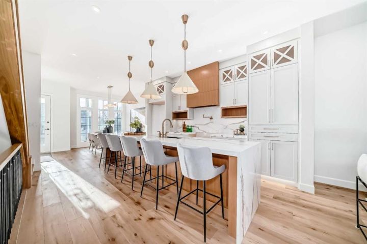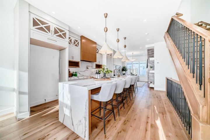 ** Open House: Monday, Nov. 10th 2-6pm, Friday, Nov. 14th 1-3pm, Saturday, November 15th 1-3pm and Sunday, November 16th 1-3pm ** Welcome to 2048 41 Avenue SW — a stunning 4-bedroom, 3.5-bathroom luxury residence crafted by acclaimed inner-city builder Palatial Homes Ltd., perfectly situated on a premium corner lot in the heart of Altadore. Surrounded by some of Calgary’s best amenities, this home is just minutes from top-rated schools, playgrounds, parks, off-leash areas, boutique shopping, and vibrant Marda Loop dining — making it the ideal location for families and professionals alike. The home’s bold brick exterior, fully landscaped and fenced yard, and detached double garage make an unforgettable first impression while ensuring low maintenance and timeless curb appeal. Inside, you'll find a thoughtfully designed, light-filled interior with a bright front dining area and an open-concept layout perfect for entertaining and everyday living. Stunning wide plank hardwood flooring flows throughout the main level, complemented by 10-foot ceilings and designer finishes. The gourmet kitchen is a true showstopper, featuring quartz countertops, a full-size island, ceiling-height cabinetry, and a premium JennAir appliance package. The adjacent living room is anchored by a cozy gas fireplace with floating built-in shelves and large windows that flood the space with natural light. A custom mudroom and stylish powder room add everyday convenience and function. Upstairs, the primary suite is a luxurious retreat with a spacious walk-in closet, and a spa-like ensuite featuring heated tile floors, a freestanding soaking tub, walk-in shower, and dual vanities with quartz counters. Two additional well-sized bedrooms, a shared full bathroom, and an upper-floor laundry room complete this level. The fully finished basement offers a massive recreation room, wet bar, full bathroom, and a fourth bedroom — ideal for a guest suite, teenager’s retreat, or home gym. Book your showing today!