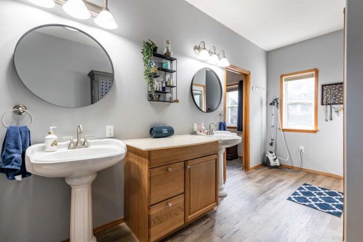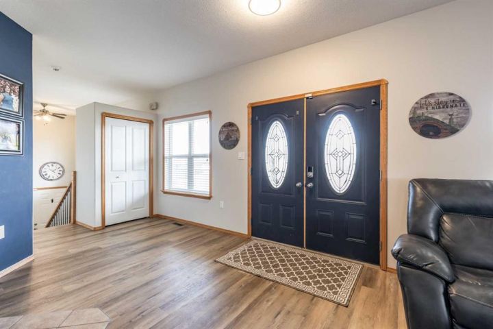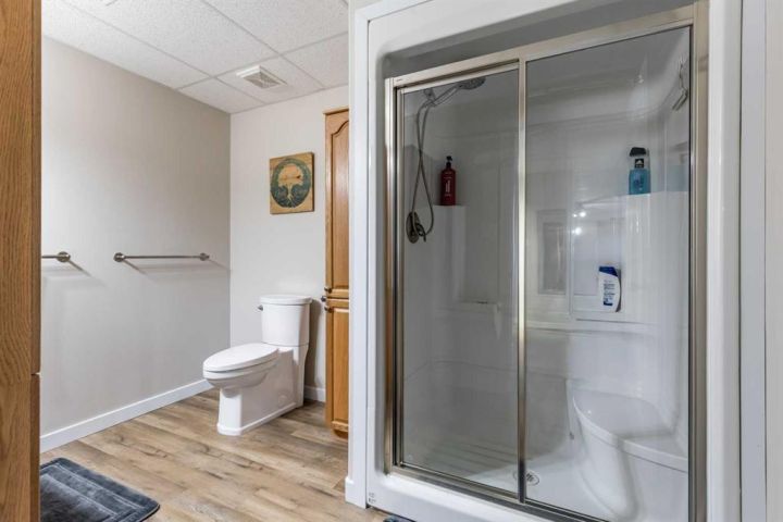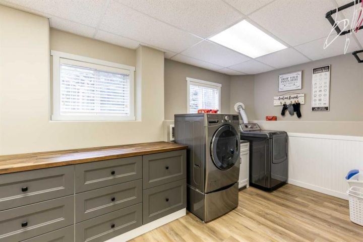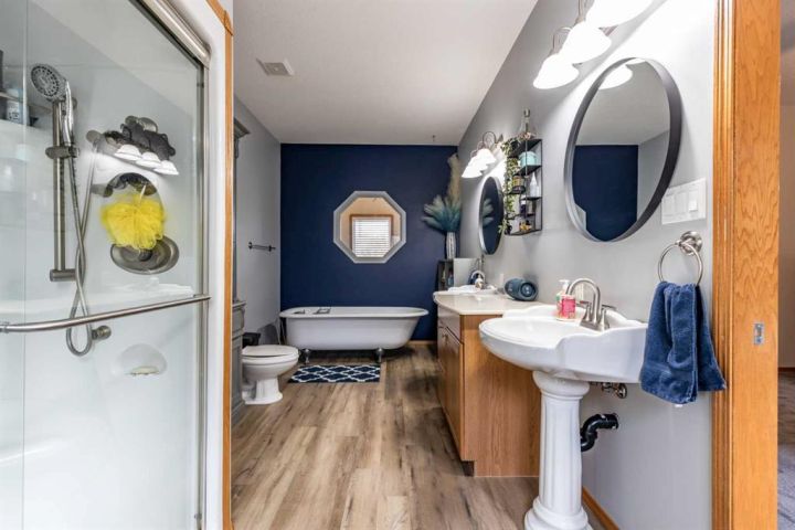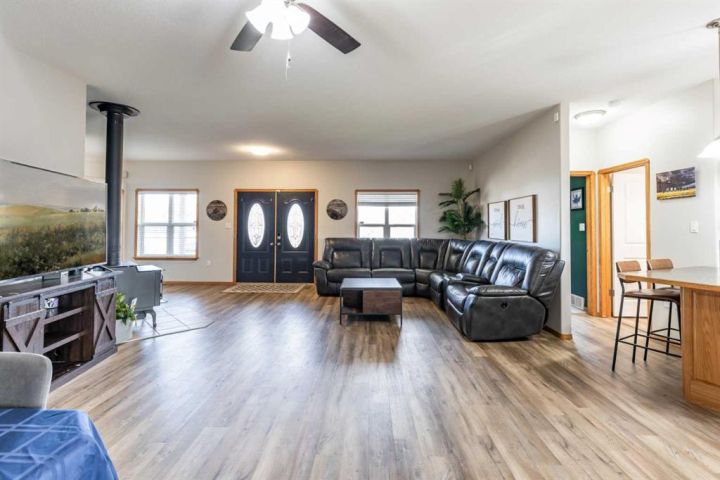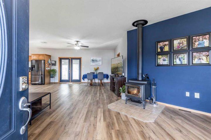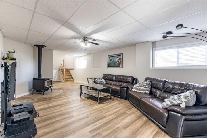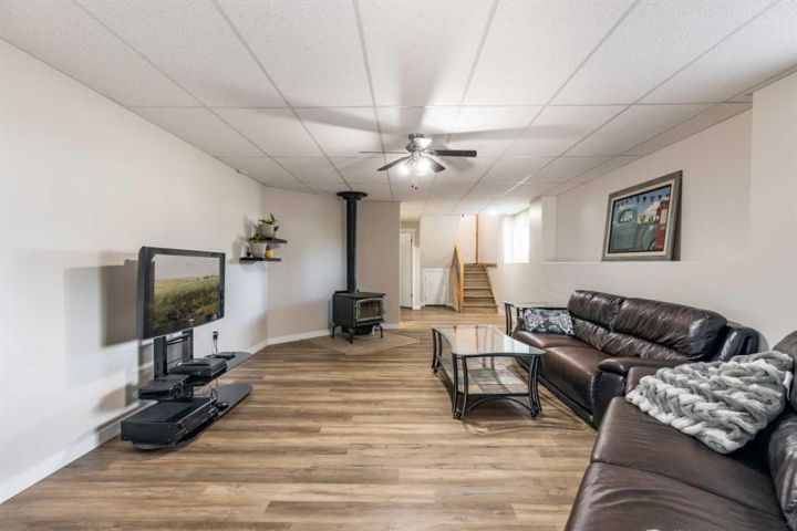 This stunning 1795 SqFt bungalow offers an abundance of space, comfort, and incredible functionality inside and out. The main floor features 10' ceilings, an open-concept living area filled with natural light, and updated vinyl plank flooring throughout. The kitchen, dining, and living room flow seamlessly together, centered around a cozy wood-burning fireplace. The large primary suite includes a luxurious 5-piece ensuite with a clawfoot tub, walk-in shower with body sprays, and generous closet space. A second bedroom, 4-piece bath, and an insulated sunroom with heat exchange and air conditioning complete the main level. Downstairs, enjoy even more living space with a family room, laundry, 3-piece bath, three additional bedrooms (one of which has been fully soundproofed so could be used as a theater room) Outside, this .53-acre property is a dream for hobbyists or those needing extra storage - featuring not 1, not 2, but 3 heated garages. The attached garage is 23'8x25'6 with 10' tall ceilings, a radiant heater & large storage room and the two detached garages are 24'9"x27'4" and 26'11" x 24'10" and both have 220v power, 8' ceilings, gas heaters and wood stoves. The outside also features RV parking, five storage sheds, garden boxes, and a patio area. A solid, well-cared-for property - this home truly needs to be seen to be appreciated!