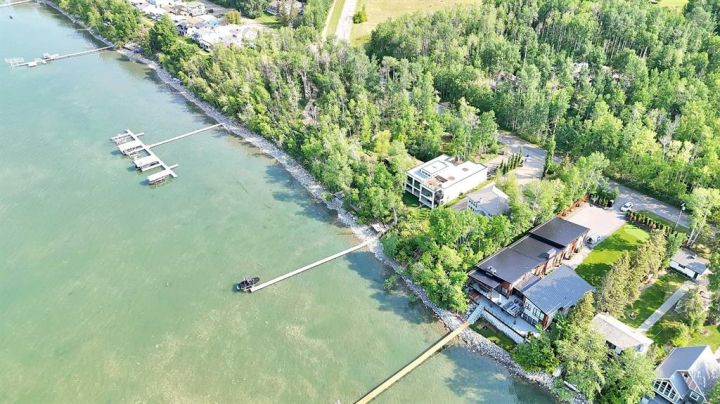 Welcome to this rare opportunity to purchase this highly sought after Birchcliff home on the sunny side of Sylvan Lake! This stunning 2 storey home on a 75 x 213 lot offers breathtaking panoramic views and endless possibilities for lakeside living. This exceptional home boasts 2 primary bedrooms with ensuites and both rooms feature amazing SW views of the legendary Sylvan Lake Sunsets. This beautifully crafted home featuring soaring ceilings, rich wood detailing, granite countertops and elegant hardwood floors throughout. The upper family room and great room feature serene lake views from the expansive windows that flood the space with natural light, or relax by the cozy fireplace on cooler evenings. Step outside to the covered deck, gas fire pit, perfect for entertaining, unwinding, or simply soaking in the natural beauty of your surroundings. With plenty of space to expand or customize, this property offers incredible potential for a luxurious year-round residence or a weekend retreat.