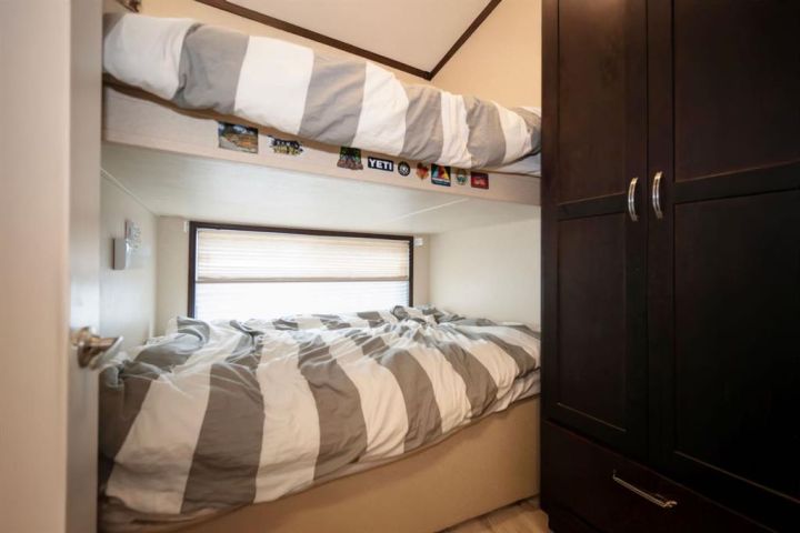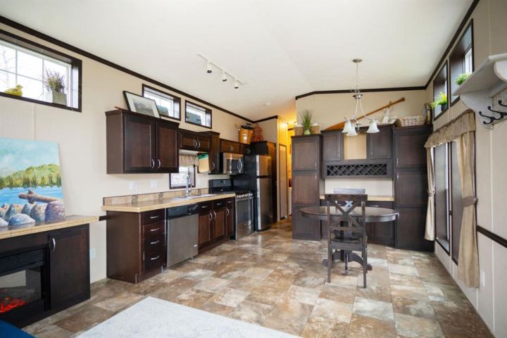 Experience affordable lake living with this oversized, beautifully landscaped lot located just steps from the marina, offering exceptional privacy and unobstructed lake views. Situated in the prestigious Sandy Point Resort on the southwest shores of Gull Lake, this property includes a Fairmont Country Manor Park Model designed for true four-season use, making it ideal as a recreational retreat, year-round residence, or revenue opportunity. The bright open-concept interior features vaulted ceilings, upgraded finishes, and large windows that create a warm and inviting atmosphere. The kitchen is equipped with rich dark cabinetry, full-size stainless steel appliances, and generous storage, flowing easily into the living area where a built-in electric fireplace adds comfort and ambiance in every season. The added convenience of a stacked in-unit washer and dryer enhances year-round functionality. With two bedrooms, this home comfortably sleeps six. The primary bedroom includes a built-in wardrobe, while the second bedroom features double bunk beds designed to accommodate four guests. A full four-piece bathroom completes the interior with residential-style comfort. Outside, the lot is fully fenced and landscaped, with a 16x16 deck for outdoor dining and relaxation, a dedicated fire pit area, and a 10’x14’ storage shed providing ample room for lake equipment, tools, or recreational gear. The spacious lot also allows flexibility for future development or expanded outdoor living space. Whether you are boating, golfing, walking the trails, or relaxing by the fire, this property offers the perfect blend of nature, recreation, and comfort. Immediate possession is available, allowing you to begin enjoying the lake lifestyle without delay.
