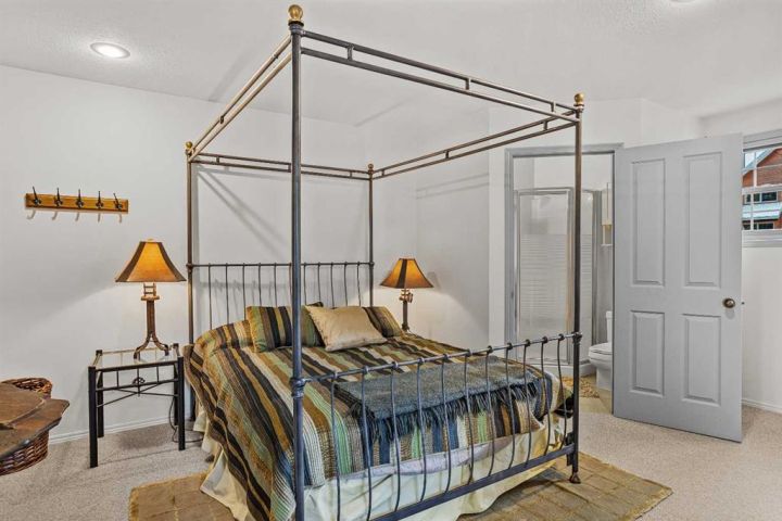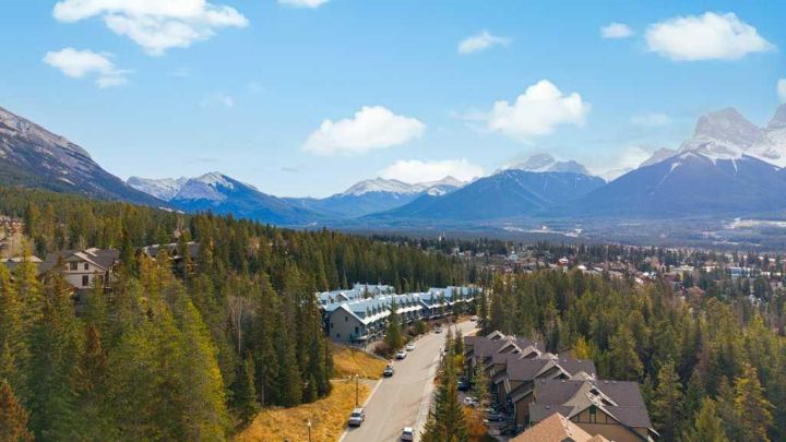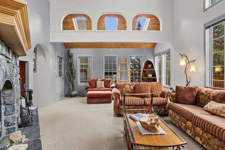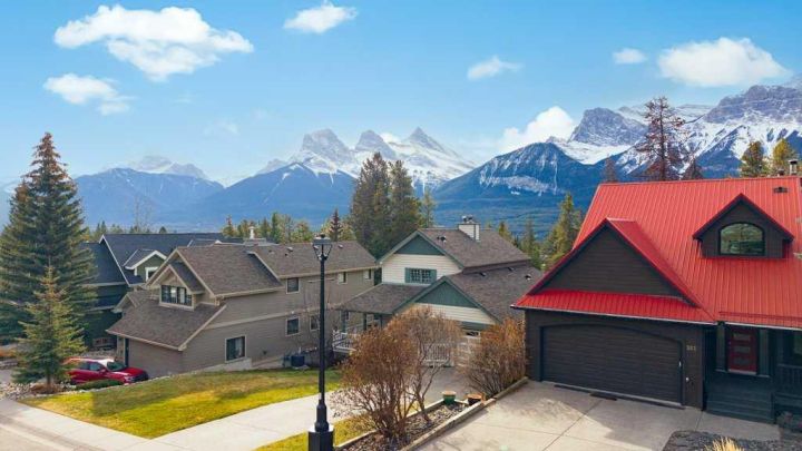 Epic mountain views and timeless character define this stunning 2400 sq ft home, hugged in mountain light with a perfect blend of forest and and south west peak views including 3 Sisters and Lawrence Grassi . The main level welcomes you with a generous foyer and leads into a great room flooded with natural light and a feeling of space with soaring ceilings. A floor-to-ceiling stone fireplace with custom millwork anchors the living area, setting the tone for cozy mountain evenings. The massive kitchen offers an eat-up bar, abundant cabinetry, and a dining area wrapped in windows — the perfect place to gather and take in the views. Upstairs, the primary suite has an ensuite and office nook open to the main level. The walkout level features three additional bedrooms, a large family room, and full bathroom plus access to a tranquil lower patio surrounded by forest. Outdoor living is exceptional with a wrap-around front verandah for sunrise coffee, a sunny back deck for BBQs, and a lower area ready for your own Nordic-style spa — space for a hot tub, cold plunge, and sauna. The yard feels like you’re alone in nature, yet you’re just a short stroll from downtown Canmore’s cafés, trails, and shops. This well-cared-for home is far from cookie-cutter — a true mountain escape that blends thoughtful design, privacy, and that one-of-a-kind feeling of light, calm, and connection to nature only found in the Rockies.