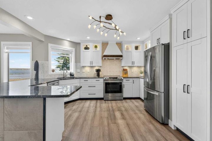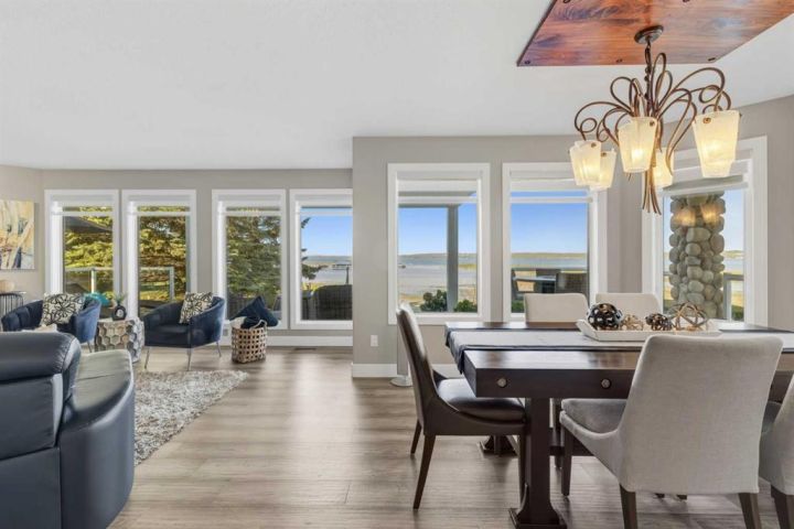 Waterfront Luxury in the Heart of Sylvan Lake, Welcome to your lakeside retreat in the prestigious Marina Bay community, where every day feels like a getaway. This stunning 2-storey home offers over 3,400 sq ft of total living space, beautifully designed across three levels with 4 bedrooms and 4 full bathrooms — ideal for families or those who love to entertain in style. Step inside and be greeted by a bright, open-concept main floor featuring a spacious living room anchored by a cozy fireplace, a gourmet kitchen with modern cabinetry, stainless steel appliances, and generous island seating, and a formal dining area perfect for gatherings with friends and family. A dedicated office on the main level offers the ideal work-from-home setup, while the 3-piece bath and laundry room add convenience. Upstairs, discover a luxurious primary suite complete with a 3-piece ensuite, large closets, and peaceful lake-view vibes. Two additional bedrooms and a 4-piece bathroom complete the upper level — each room thoughtfully sized for comfort and function. The fully finished basement extends the living experience, boasting a wet bar, large recreation room, fourth bedroom, and another full bathroom — a perfect setup for guests, extended family, or cozy movie nights. Outdoors, enjoy an expansive deck and private yard, perfect for relaxing summer afternoons after a day on the water. Property is has full Irrigation. The attached double garage provides ample space for vehicles, and lake gear, plus seller has been approved for a large detached garage along the east side of the lot for more storage for your boat or cars and potential for extra added living space. This Property has 2 Boat Slips and Remember Marina Bay’s exclusive amenities — including a private marina, tennis courts, clubhouse, and lakeshore walking paths — set the standard for resort-style living.