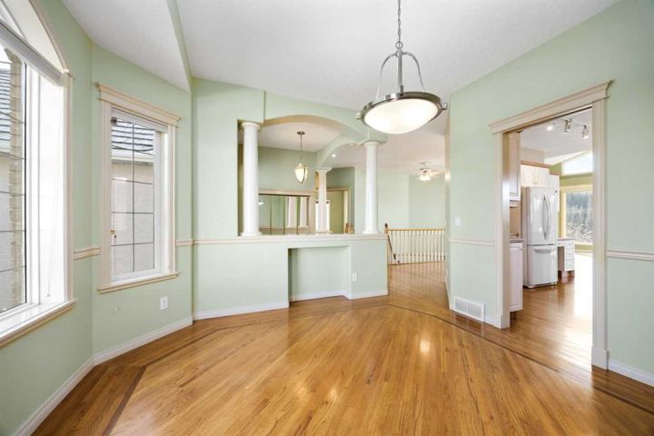 ****OPEN HOUSE Saturday November 01, 2025 and Sunday November 02, 2025 11:00am-1:00pm.****For the first time ever, this beautifully cared-for riverfront bungalow is ready for new owners. Lovingly maintained by its original owner, this home offers a rare blend of comfort, warmth, and connection to nature. Step inside to discover bright, sun-filled spaces designed to capture light all year long. The main level features an inviting flow with a three-sided fireplace, a formal dining room, and a kitchen nook overlooking the yard. The main floor den adds flexibility for work or quiet reading, while the updated ensuite and walk-in closets in every bedroom bring comfort and practicality. Downstairs, the walkout basement opens to a private, gated yard surrounded by mature trees and gardens, and features a brick gas fireplace that makes the space perfect for relaxing or entertaining. With heated floors throughout the basement and ensuite, and central air conditioning, this home offers comfort in every season. Enjoy sunny afternoons on the southwest-facing upper patio with a natural gas line and stairs leading to the yard, just steps from the river. Lovingly cared for as a non-smoking, no-pet home, this bungalow reflects true pride of ownership. A pre-listing home inspection is complete and available for buyer confidence.
