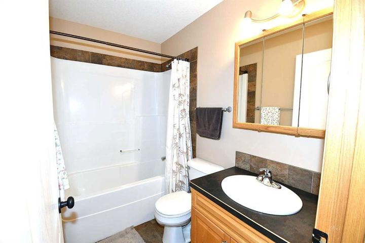 This stunning 2008 bi-level home seamlessly blends modern style with practical functionality. The open-concept main living area boasts vaulted ceilings, hardwood flooring, and a tile entrance, creating a sense of spaciousness. The kitchen shines with stainless steel appliances and newly updated granite countertops. The master retreat is a serene oasis, nestled above the garage with a walk-in closet and luxurious 4-piece ensuite bathroom. With four bedrooms and three 4-piece bathrooms, this home offers ample space for families. The finished basement adds significant value, providing an additional bedroom,and full bathroom. Modern conveniences include an on-demand hot water system and air conditioning. The expansive family room is perfect for a pool table, home gym, play area, or game room. Outside, enjoy the 24x24 heated garage, 20x13 back deck, and beautifully landscaped yard with mature fruit trees and convenient RV parking with back-lane access.