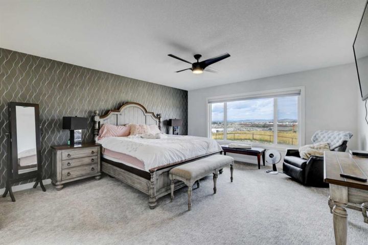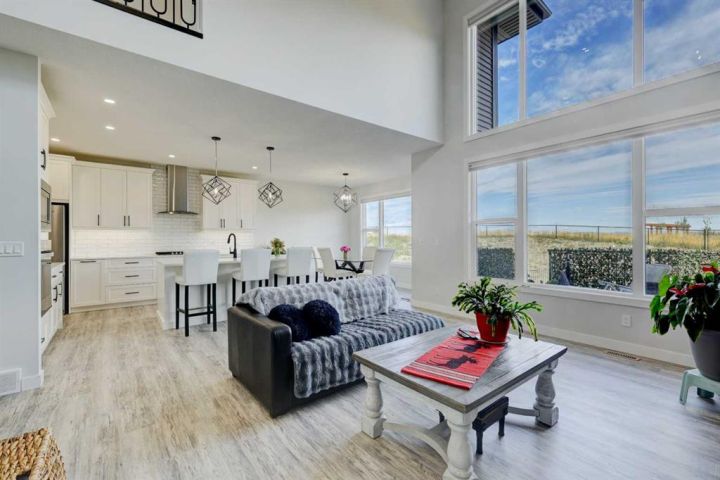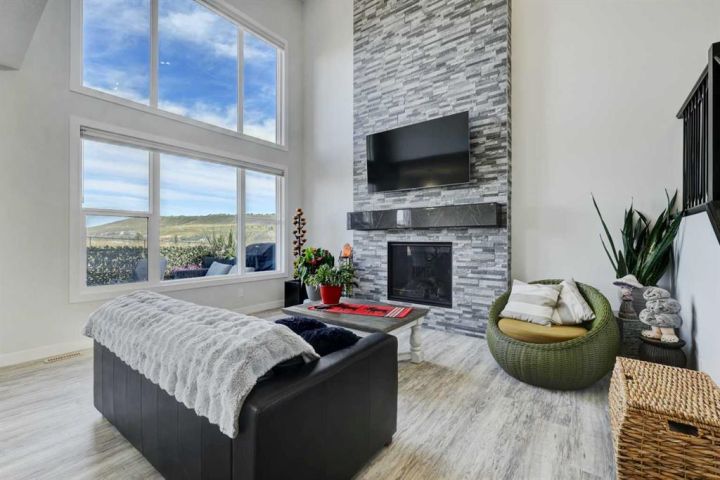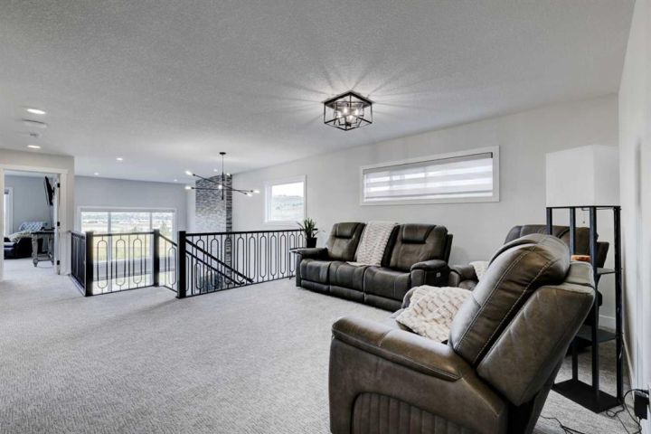 OPEN HOUSEs Saturday & Sunday November 8th and 9th (12-2pm)....This custom-built two-storey Trico home sits on 0.21 acres and features impressive mountain, river, town, and Cochrane Big Hill views. Natural light fills the open kitchen, sitting, and living areas thanks to a wall of windows facing north west. The main level includes a spacious mudroom and pantry, leading to a fully finished heated double garage with workspace. Upstairs offers a large family/bonus room, laundry room, a primary bedroom with views, a five-piece ensuite, walk-in closet, two additional bedrooms, and another five-piece bath. The lower level is ready for your personal touch. Outside is designed to be more than a backyard oasis; it's a space where families gather. Contact us today to schedule a viewing and discover what this home in Precedence has to offer.