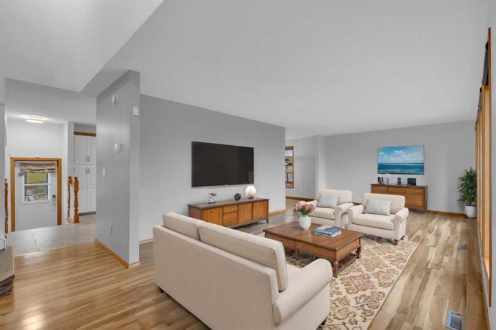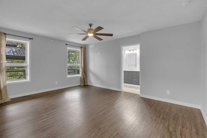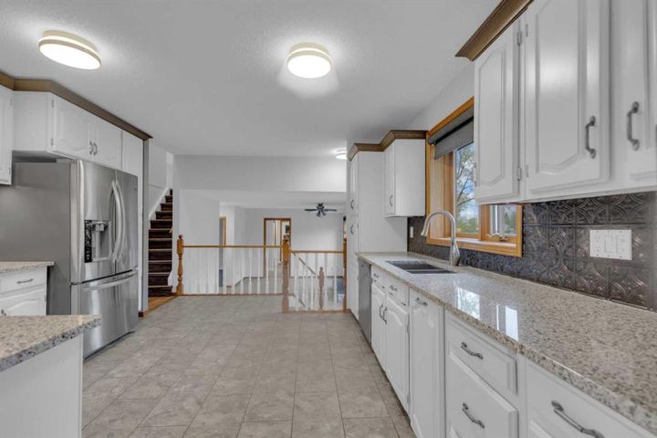 Experience the perfect blend of country tranquility and city convenience in the sought-after community of Springvale Heights, just minutes from Red Deer. This remarkable acreage captures sweeping views of the Rockies and the city, offering both peace and proximity. Built with architectural foresight and quality, the home features 9” energy-efficient walls and a long list of recent renovations. Step inside through the impressive front entryway, where soaring ceilings set the tone for the elegance throughout. Designed with both comfort and functionality in mind, the home offers three convenient entrances. The chef-inspired kitchen is the heart of the home—beautifully upgraded with granite countertops, modern stainless steel appliances (including a gas stove), redesigned cabinetry, crown molding, and a stylish backsplash. A welcoming dining area and formal living room, both with upgraded flooring, create the perfect space for gatherings. The cozy family room features a wood-burning fireplace and leads to a versatile multi-purpose area with extra storage, a renovated laundry room, a bathroom, and direct garage access. The main-floor primary suite is your private retreat, showcasing a spa-inspired ensuite with marble counters, a jacuzzi tub, and a walk-in closet. Upstairs, a second primary suite features balcony access—perfect for sunset views or watching fireworks—plus an elegant ensuite with a double quartz vanity and subway-tiled shower/tub combo. Two additional bedrooms and another full bathroom complete the upper level. The lower level is ideal for family fun or entertaining—perfect for a home theatre, games room, or teenage hangout. It also includes a large mechanical/storage room with two brand-new furnaces and a new hot water tank. Car enthusiasts will love the attached heated garage with radiant heat, 14-foot ceilings, new 10x10 overhead doors, and 220V wiring. Outside, enjoy the two expansive west-facing decks, mature landscaping, fruit trees, and a fully fenced yard—ideal for kids, pets, and entertaining. There’s ample space for trailers, campers, and extra parking. Located just three miles from Red Deer, this property offers pavement right to your door, access to school bus service, and community amenities like a playground and ball diamonds. With grocery and food delivery available, you truly can have the best of both worlds. This isn’t just a home—it’s a lifestyle. Come see why Springvale Heights is one of Central Alberta’s most desirable acreage communities.