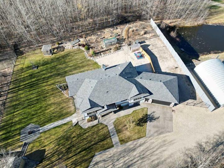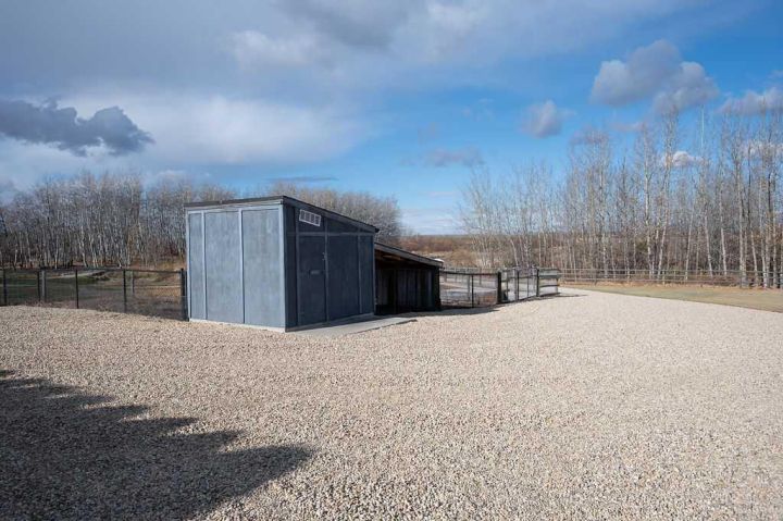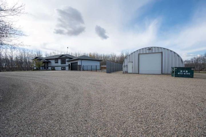 Welcome to this exceptional custom-built home on 12.97 acres in the highly desirable Leduc County. Lovingly maintained by the original owner, every inch of this property has been thoughtfully manicured. Step inside to find the large entry and 9’ ceilings throughout. On the main level the kitchen is so perfect for entertaining and ease of cooking. Large island, lots of cupboards and drawers, pantry and modern appliances. The dining room has a door to the deck, so outdoor cooking is made simple. The cozy living room has a gas fireplace and beautiful mantle. Down the hallway you will find a 4-piece main bathroom with storage, and a large bedroom. The master suite has a 3-piece ensuite, door to the deck, large walk-in closet and access to the laundry room with sink. There is a dedicated home office or additional bedroom and 2-piece bathroom that can easily be separated from the house with just closing a door, so if you run a home business, staff or customers can access through the garage, and you have the ease of separation from your living space. The lower level walk out features large windows, so you do not feel like you are below ground. The family room has a wood stove with a cold air return just above so with putting on the furnace fan, you are able to push heat throughout the house. The wet bar is equipped with a full sized fridge and dishwasher. A 4 piece bathroom complete with a dry sauna. 3 additional bedrooms, a storage room and well thought out cold room with temperature regulation. There is also a door to walk up to the double attached garage. Outside, you’ll discover a fully fenced backyard designed for both relaxation and recreation. Whether you’re enjoying quiet evenings by the firepit, tending to the incredible garden area, or watching your pets play in one of the two dog runs, this property offers a lifestyle that is hard to match. There’s also a concrete pad perfectly suited for an above-ground pool, giving you even more ways to enjoy your private outdoor paradise. The Quonset is equipped with rough in for water, septic and a wood stove. The pressure tank in the house is oversized so it will not be a problem to have water in the shop. It currently has radiant heat and is wired including a garage door opener. You will also benefit from powered gates at the driveway, additional driveway built for the septic truck to have easy access and streetlights along the driveway. If you want to try your hand at hobby farming, there is a chicken coop and pig pen ready to go. But the most amazing part is the serene walking trails and inviting campfire spot with cook shack tucked into the treed area. This property is truly one of a kind. This is more than just a home—it’s a retreat, a sanctuary, and a rare opportunity to own a piece of country paradise. Don’t miss your chance to experience the ultimate in acreage living.