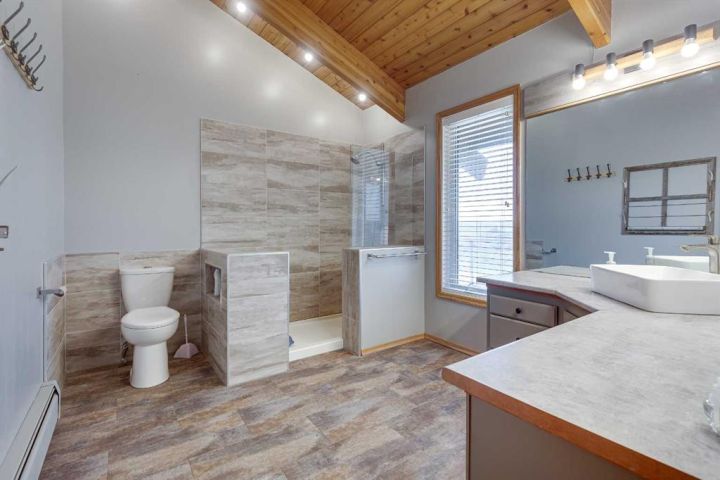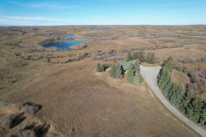 A once-in-a-lifetime opportunity on the iconic Jack Rabbit Trail! This extraordinary property offers a rare chance to own a piece of Alberta’s ranching legacy, complete with breathtaking, unobstructed valley & mountain views, a charming, period ranch house full of character, and your own private indoor riding arena. The property is the perfect blend of privacy, potential and character. The home was purposely built high on a hill to take in the amazing views and now sits on a proposed 11 +/- acre parcel (subdivision in progress). The home is wrapped in mature, thoughtfully designed landscaping planted in 1979. A security gate with ¼-mile paved driveway leads to a bungalow that captures the essence of country living. The 2,260 sq ft main floor (over 4,500 sq ft of total living space) is highlighted by beautiful stone exterior accents, vaulted ceilings, and generous proportions throughout. The home features 5 bedrooms and 3 full bathrooms, with a layout designed for both function & comfort. The kitchen is bright and spacious, featuring a large island, ample cabinetry & counter space. A large dining area & an expansive living room offers ideal space for gatherings. The center field stone fireplace adds warmth & ustic charm while the unique touches like The wagon-wheel staircase, solid woodwork, and original design elements bring a timeless, one-of-a-kind feel. Also on the main floor: an office, separate laundry room, & the primary bedroom with an updated ensuite, plus one additional bedroom. Downstairs, the fully developed lower level offers three more generous bedrooms, a large recreation room with a snooker table (included), another wood burning fireplace, and plenty of storage. The outdoor living is equally impressive, with both a southwest-facing deck & a welcoming east-facing front porch complete with pergola— ideal for relaxing mornings or evening entertaining. For the hobbyist or car enthusiast, the heated and drywalled 4-car garage is fully equipped with built-in shelving and workbenches. The newly full fenced 11 ac. home site is mostly native grass pasture. The remainder of the land is also native pasture with excellent grass, trees, water & super perimeter fences. These beautiful rolling hills are home to a variety of wildlife & make for incredible riding & recreation - as does the steel-frame riding arena & barn complex built in 1985. Strong built structure offers a total of approx. 20,000 square feet of interior space, including a lean-to and 2,400 sq. ft. mezzanine/loft area. The main arena measures roughly 80' x 200', providing ample space for training, events, or year-round equestrian activities. The barn features in-floor heating. Whether you're looking to restore the home’s original beauty, modernize it with a fresh vision, or create a custom estate that bridges past and present, this property offers unmatched potential, privacy, and views - all just minutes from Airdrie amenities, 45 minutes to downtown Calgary yet worlds away in peace and charm.