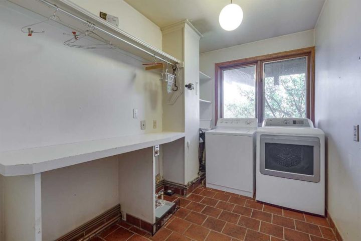 Refrigerator, Wall oven(s), Stove top, Dishwasher, Pool table, Water filtration, Rain barrel, Security gate, Central vacuum & attachments, Reverse osmosis, Water softener, Workbenches and Shelving (in garage)