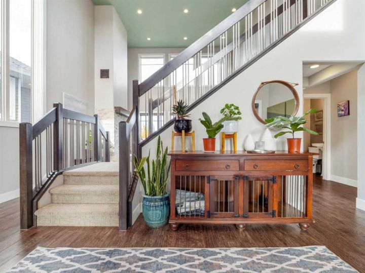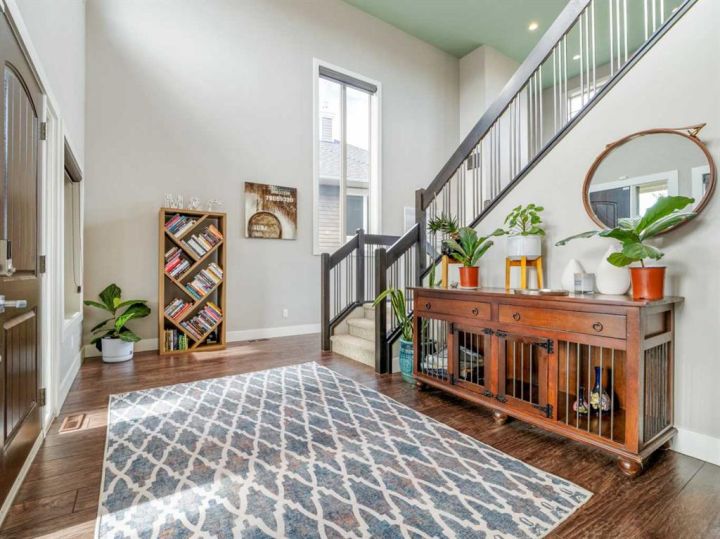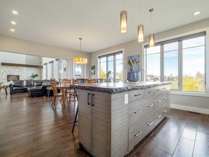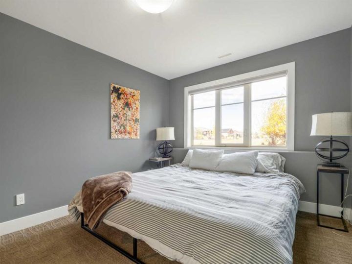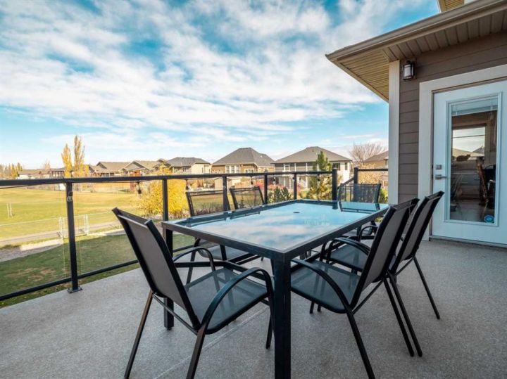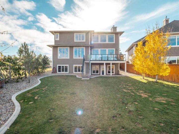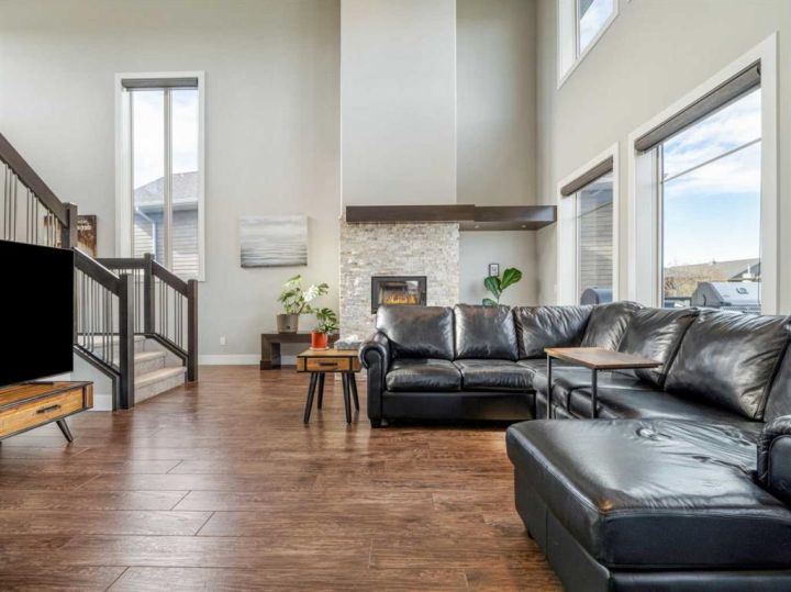 If you are looking for a home that gives you a WOW factor the minute you walk in the door, look no further. Upon entering this gorgeous home you will notice the grand central staircase as well as the towering 22 foot ceilings and the huge windows that reach to the top of the ceiling. This amazing home backs a greenspace as well as it has a greenspace to the one side so you only have one set of neighbors on the west side. You will appreciate the huge deck overlooking the back yard and large greenspace, as well as the walk out basement this home offers. On the main floor you have a beautiful white stone wood burning fireplace, as well as a modern and sleek kitchen with concrete countertops and stainless steel appliances and the fridge was just purchased within the past year. As you enter from the oversized 26 x 25 garage perfect for even the largest trucks, you will find hanging lockers for all the kids boots and jackets as well as main floor laundry and a generous closest and panty. Upstairs via the grand central staircase you will find 3 bedrooms a full 4 piece bath and a lovely ensuite bath off the master bedroom. Downstairs you will find an additional three bedrooms, a family room with a gas burning fireplace and walk out basement that previously had a hot tub so the wiring is all still in place if you wish to bring your own. You will also find a storage room and another full 4 Pc bath perfect for the teenagers downstairs. If you are looking for room to park your RV the front driveway is so large you could fit the RV to one side and still have room to park multiple cars. Other great features of this home are the underground sprinklers, new concrete curbing around the trees and shrubs, Central air, wet bar downstairs, and all appliances including the washer and dryer are included. Don't delay homes like this don't come up to often!