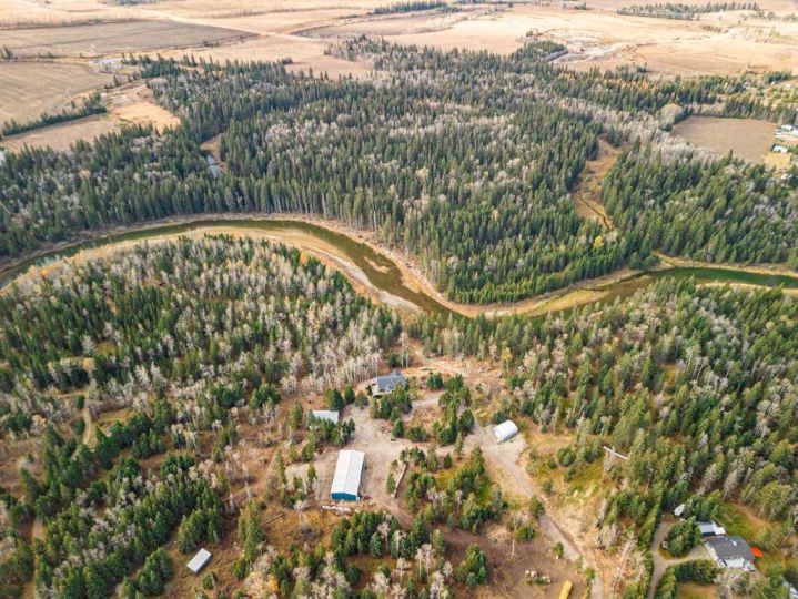 Stunning 4.25-acre property in peaceful Red Lodge Estates backing onto Crown Land and Little Red Deer River! This 4-bedroom bungalow offers an open-concept layout, walk-out basement, durable rubber shingle roof, wrap-around deck, and hot tub with river views. Outbuildings include a 30x40 Quonset (unheated), a 30x50 garage with shelving, wood stove & radiant heat, plus a newer 40x80 shop with in-floor heat, hoist, bathroom with shower/laundry, mezzanine, and metal roofs on all shops. A perfect blend of privacy, functionality & natural beauty — your riverside retreat awaits! The home was being fully repainted so it will be fresh and new for the new owners!!