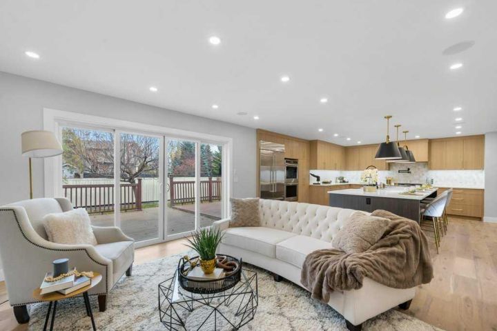 Fine craftsmanship in this renovated estate home in the prestigious lake community of McKenzie Lake. Offering 3,648 sq ft of fully renovated living space, this property screams modern luxury all in an exceptional location; nestled on a quiet, mature cul-de-sac with lake access. The striking new interior features a bold architectural floorplan centered around a dramatic glass staircase. The gourmet kitchen is a showstopper with sleek wood cabinetry, quartz countertops, ceramic apron-front sink, gas cooktop, built-in oven, and a massive central island. The main floor also includes a spacious dining area, cozy living room with gas fireplace, private office, 2pc bath, custom mudroom & storage complete with built-ins, and access to the oversized double garage. Upstairs, the luxurious primary suite boasts an immaculate grande 5pc ensuite with glass shower and separate soaker tub. Did I mention, the DREAM custom walk-in closet? 2 additional bedrooms, a full 4pc bath, and a laundry room with sink complete the upper level. The fully finished basement adds 2 more bedrooms, a 4pc bath, and a large rec room with wet bar - ideal for entertaining or family living. Enjoy summer evenings in the beautifully landscaped backyard featuring a massive composite deck with railings and a firepit. Additional highlights include air conditioning, double attached garage, and lake privileges for year-round recreation. Located in the prestigious and established lake community of McKenzie Lake, where residents enjoy year-round lake privileges, access to scenic walking and biking trails along the Bow River, and close proximity to the expansive natural beauty of Fish Creek Park. Commuting is effortless with quick access to both Stoney Trail and Deerfoot Trail, connecting you to all corners of the city. Families will appreciate the highly rated public and Catholic schools nearby. This is a rare opportunity to own an outstanding home that you will love to entertain in. Book your private showing today!