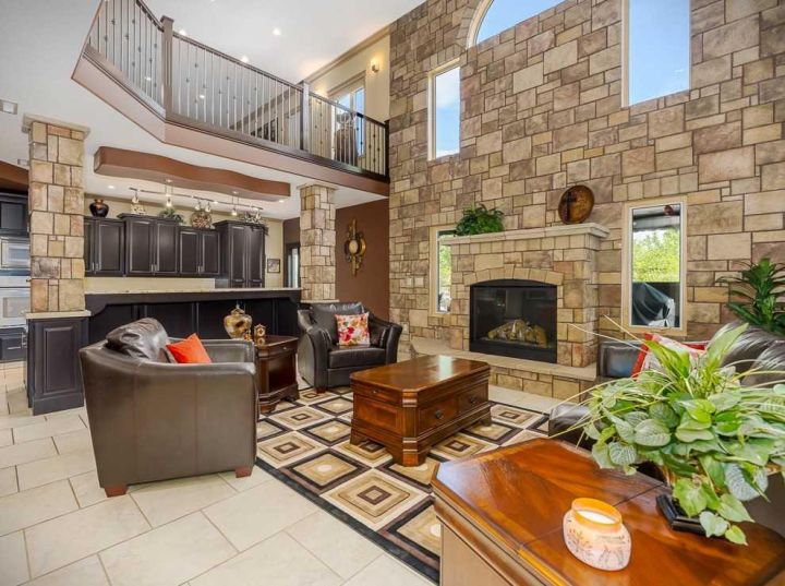 A rare opportunity where luxury living meets limitless potential. Located in one of Didsbury's most unique residential–industrial cul-de-sacs. This executive home and fully equipped shop offer a lifestyle that is almost impossible to replicate. From the moment you arrive, the dual iron gates, stamped concrete driveway, and meticulously landscaped grounds set the tone. The property feels like a private retreat, complete with an irrigation system, low-maintenance rock landscaping, a custom river feature with waterfalls, in-water lighting, a pond, walk-over bridges, mature trees, sitting areas, and streetlamp lighting that creates an incredible evening ambiance. The covered deck with stone archways adds a courtyard feel - ideal for hosting family, friends, or business guests. Inside the residence, a grand floor-to-ceiling fireplace anchors the great room, which flows into a chef’s kitchen with granite counters, stainless steel appliances, a pull-out pantry, four-seat eating bar, and adjoining dining area. The main floor also features a home office with gas fireplace, laundry room, 3-piece bath, and a dedicated hot tub/sauna room. Upstairs, the primary suite offers a private sitting area with fireplace, access to the upper deck, a large walk-in closet, and a spa-inspired ensuite with soaker tub and tiled shower. A second bedroom, full bath, wet bar, family room with gas fireplace, and a dramatic open-to-below catwalk complete the upper level. The home includes in-floor heating on both levels, instant hot water, and air conditioning. The heated shop is a dream for business owners, hobbyists, or vehicle enthusiasts, featuring in-floor heat, new oversized overhead doors, new professional floor coating, LED lighting, 300-amp power, RV hookups, washroom, storage rooms, utility room, and mezzanine office. Ample parking and turnaround areas allow for equipment, RV, or fleet storage. Live in comfort with space for your business and toys, or explore multiple income possibilities: bed and breakfast, storage facility, microbrewery, automotive/custom shop, oilfield services, or private event venue (subject to approvals). Quick access to QEII Highway adds convenience and value. This property must be seen in person to be fully appreciated. Call today for a private viewing.