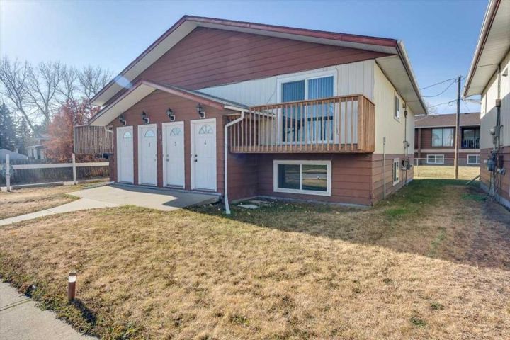 Fabulous location, walking distance to Olds College! Well maintained and managed, this property offers 2 - 4 plexes (2 bed, 1 bath units) on one title. Many capital cost expenditures done over the past 20 years: asphalt shingles - 15 years, windows and patio doors - 10 years, approx 6 of the 8 furnaces, hot water tanks as needed, electrical switches and outlets in 7 of the 8 units, decks redone, paint and flooring upgrades between tenancies. Each building features 2 main floor units, and 2 basement units. Photos are of 2 units when they were vacant, one main floor unit, and one basement unit. Building is fully occupied. 9 parking stalls, 8 of them energized. Tenants pay all utilities. Landlord pays garbage. Room to increase rents as some rents are below current market rates.