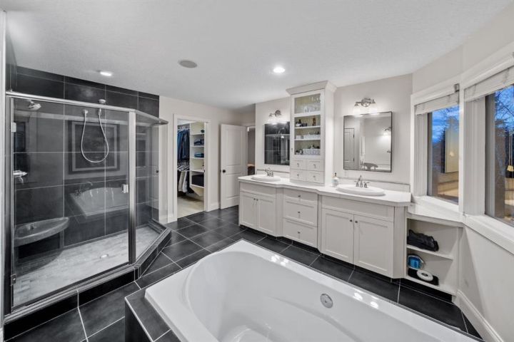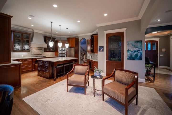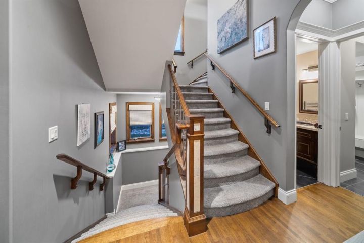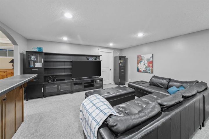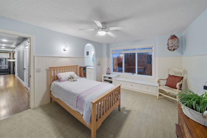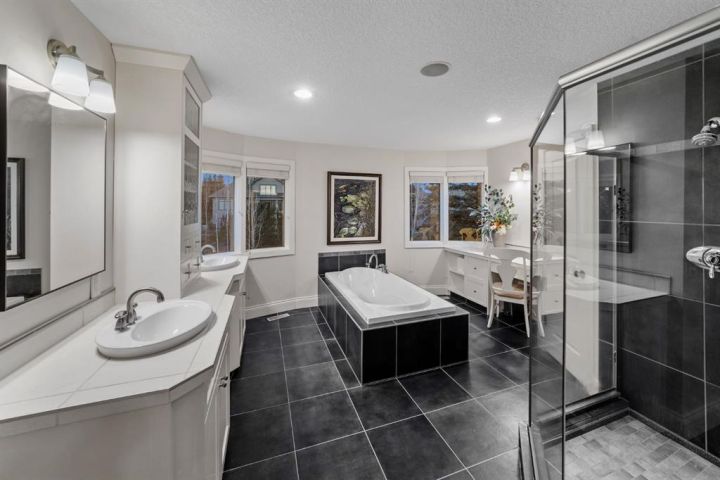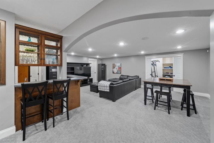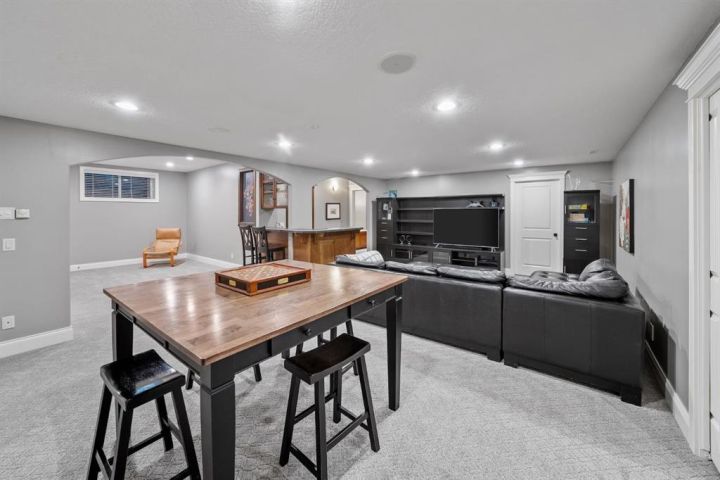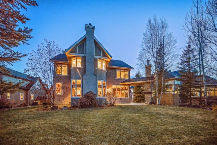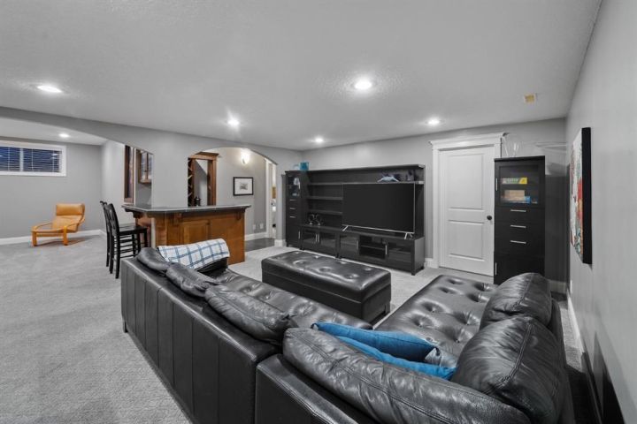 Welcome to 323 Snowberry Place in prestigious Elbow Valley — a beautifully crafted custom estate offering over 5,620 sq. ft. of thoughtfully designed living space. With 5 spacious bedrooms, 4.5 bathrooms, and exquisite millwork, this home blends quality construction with functional family living. The main floor features 10’ ceilings with crown molding, quarter-sawn solid oak hardwood, and 8’ custom wood doors with upgraded hardware. A striking custom fir front door opens to a warm and inviting floor plan complete with a large office, separate dining room, and a living area showcasing a custom black walnut entertainment unit. The gourmet kitchen includes maple cabinetry, limestone counters and backsplash, stainless steel appliances, and a walk-in pantry with an additional fridge. A cozy gas fireplace warms the breakfast nook, while the covered patio offers a wood-burning fireplace with natural gas starter—perfect for year-round enjoyment. A spacious mudroom off the garage provides excellent storage. The upper level continues with solid oak hardwood flooring and offers 4 bedrooms, all with walk-in closets. Three of the bedrooms feature full ensuites. A large bonus room includes a natural gas fireplace and built-in entertainment centre, along with an additional flex area ideal for an art studio, gym, or play space. The laundry room is conveniently located on this level. The lower level features 9’ ceilings, heated floors, a custom bar with wine room, exercise room, 5th bedroom, and a large bathroom—creating a comfortable and functional extension of the home. Completing the property is an oversized triple garage with built-in cabinetry, sink, gas line for heater, and electrical outlet for an EV charger. This exceptional residence offers luxury, comfort, and space in one of Calgary’s most sought-after communities. A truly remarkable place to call home.
