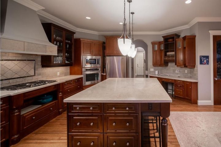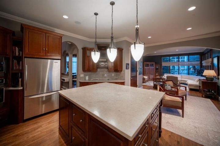 Bookcases, Built-in Features, Central Vacuum, Chandelier, Closet Organizers, Crown Molding, Double Vanity, French Door, Granite Counters, High Ceilings, Kitchen Island, Natural Woodwork, Open Floorplan, Recessed Lighting, Soaking Tub, Storage, Sump Pump(s), Walk-In Closet(s), Wet Bar, Wired for Sound
