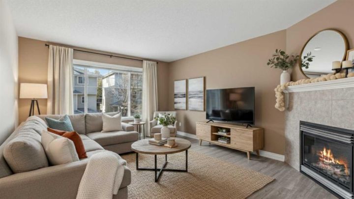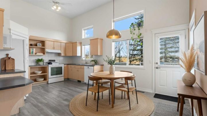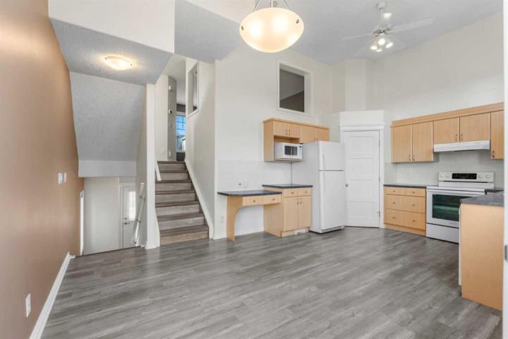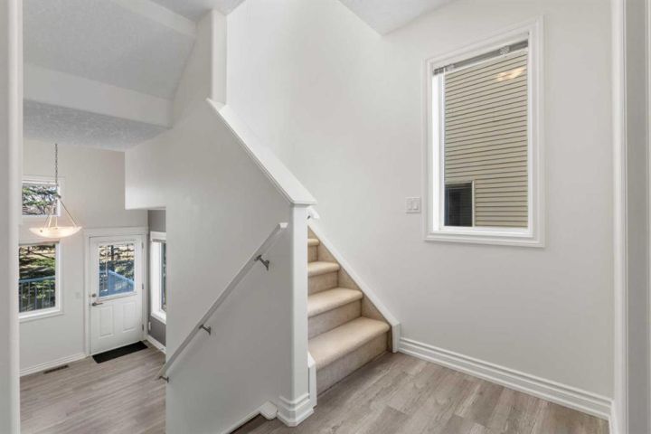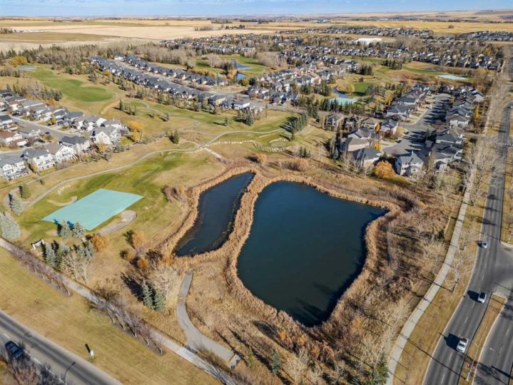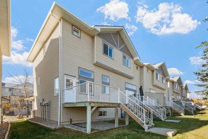 OPEN HOUSE THIS WEEKEND - SAT-SUN, NOV 15-16 from 2pm-4pm!! Welcome to The Turnbury in Crystal Shores, a sought-after pet-friendly complex (max 3 pets with board approval!) steps from the residents-only beach at Crystal Shores Lake and across from Crystal Ridge Golf Course. This bright end renovated unit backs directly onto the course with no neighbours behind and lovely views from the kitchen, dining area, deck and upper rooms. The inviting foyer leads to a sunlit kitchen and dining space with vaulted ceilings, a corner pantry and direct access to the deck with gas hook-up. A few steps up, the living room features a large window and a cosy corner gas fireplace, ideal for relaxing or entertaining. The flexible loft on the upper level is perfect for a home office, reading nook or even a bedroom if needed. On the same level, you will find two generous bedrooms. The master bedroom has stunning views of the pond and the golf course. The lower level is an undeveloped basement, great for storage today and ready for your creativity tomorrow. Parking is easy with an attached single garage and driveway. Walk to the lake and beach club, playgrounds and pathways. Minutes to schools, shopping, restaurants, recreation and all the amenities of vibrant Okotoks. This is a perfect family home or an investment property. School boundaries: K to 6 attend Dr. Morris Gibson, grades 7 to 9 attend École Okotoks Junior High, and grades 10 to 12 attend École Secondaire Foothills Composite High School or Alberta High School of Fine Arts. Pet policy summary: household pets only, subject to Board approval. No livestock, snakes, reptiles, arachnids or fowl. Maximum of 3 pets per unit. Note that the Rheem Performance Platinum water tank is just 2 years old. Book a showing today and view the 3D iGuide virtual tour!