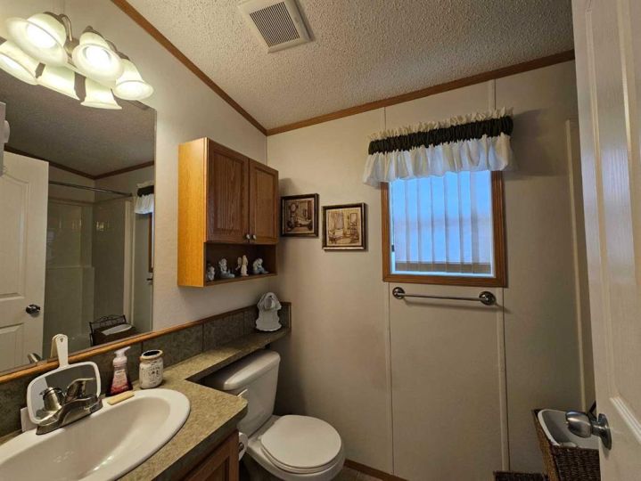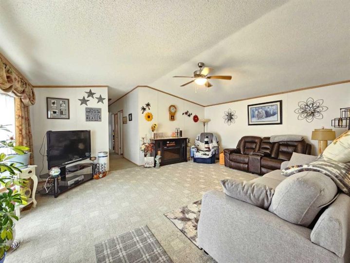 This lovingly maintained, original-owner home offers comfort, space, and that “welcome home” feeling the moment you walk in. With 3 bedrooms, 2 full bathrooms, and a thoughtful layout, this is a place where everyday living feels easy. The large living room is bright and inviting — perfect for cozy evenings or gathering with family and friends. The spacious kitchen offers plenty of room for cooking and conversation, making it truly the heart of the home. The primary bedroom is generously sized and features its own private 4-piece ensuite, complete with a corner soaker tub that’s ideal for quiet relaxation. Two additional bedrooms and a second full bathroom provide great versatility for family, guests, hobbies, or a home office. Step outside to your 14’ x 30’ patio, where you can take in the beautiful mountain views behind the property — morning coffee never felt so peaceful. A detached single-car garage adds convenience and extra storage. This home also includes thoughtful extras such as a new spare hot water tank (for peace of mind) and a new ceiling fan ready for the primary bedroom (again, for peace of mind). Silver Lynx is a 55+ community. Book your showing today before its gone!