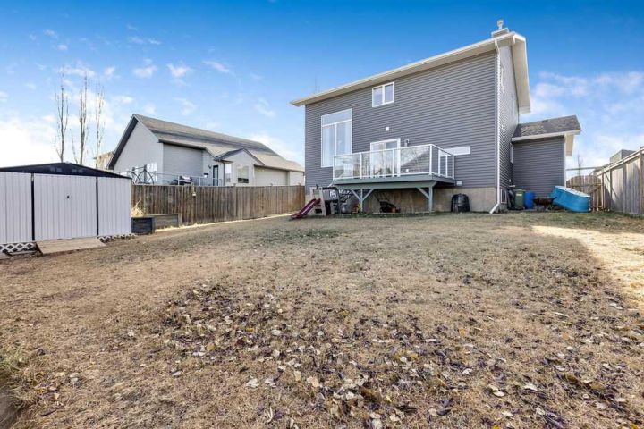 Welcome home to this fully developed two storey, room to roam, you are greeted by a nice front porch with glass panels on railings. This home has 5 bedrooms, 3.5 baths, and a main floor family room/play room/office/den, so many options, as well as a family room in the lower level. The list of upgrades in this home start with new siding, new shingles, new soffit and eavestrough, front porch redone with treated wood, upgraded furnace, and hot water tank in 2023, Stainless steel appliances in the kitchen, including an induction stove. Vaulted ceilings in the Living room complete with a gas fireplace and open to the kitchen, with breakfast bar and pantry. Main floor laundry, 2 piece bathroom and access to the garage all on the main floor. Upstairs boasts the primary bedroom with his and her closets as well as an ensuite, 2 more good sized bedrooms along with a loft that overlooks the main living room. The lower level has 2 more huge bedrooms along with a 3 piece bath and family room/games room. This home has over 2628 sq. ft of living space on all three levels! The extra long driveway will fit 4 cars and additional 2 in the garage which is insulated and drywalled. The fully fenced yard is perfect for the kids and pets, complete with a huge deck (10.3 X 13.9)with glass panels on railings, and shed. Do not delay this one will not last, call your favorite realtor today!