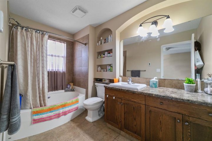 Welcome to this stunning 3-level split family home on a quiet cul-de-sac in Creekside(Victoria Park). This home features fresh paint and brand-new carpet, creating a bright and inviting atmosphere. With 3 spacious bedrooms and 3 full bathrooms, this home effortlessly combines comfort, style, and functionality for modern family living. The main floor welcomes you with a bright kitchen and living area, ideal for entertaining or a cozy family nights. Two generous size bedrooms and a 4-piece bathroom, creating the perfect space for family or guests. The open staircase leads you to the primary bedroom, featuring a walk-in closet and a spa- like 4-piece ensuite with luxurious in-floor heating- your own private oasis. The basement features large family room, 4-piece bathroom and a large partially finished space that could be used as a large bedroom or can be divided into 2 bedrooms, or can be used for a home gym, or hobby area or maybe you run a home business and need space for that.. the flexibility and choice is yours! Step outside to a backyard made for living and playing! Fully fenced for privacy and security, it features large double gates providing easy RV access-park on gravel or develop the space however you like. Low-maintenance landscaping leaves plenty of room for outdoor entertaining, gardening, or play. An 8x10 garden shed adds storage convenience, making this backyard as functional as it is versatile. Completing this incredible property is a double attached garage, offering convenience and extra storage. This home truly has it all: space, comfort, versatility, and a location that's hard to beat. Don't miss your chance to call this beautiful Camrose property home!