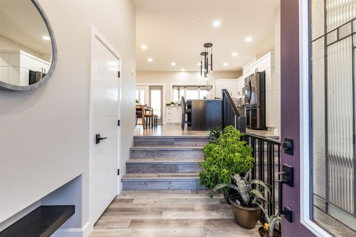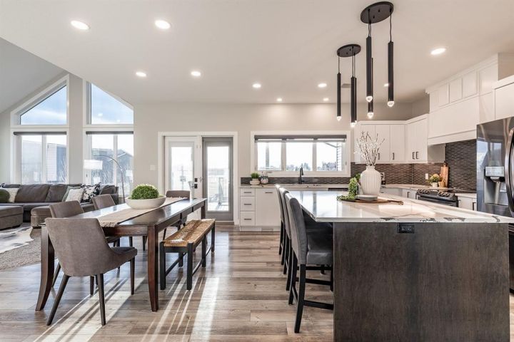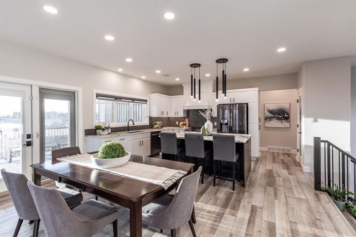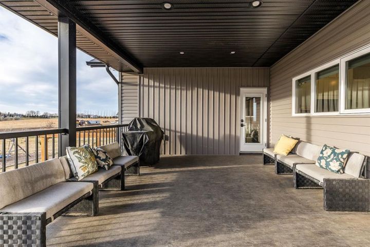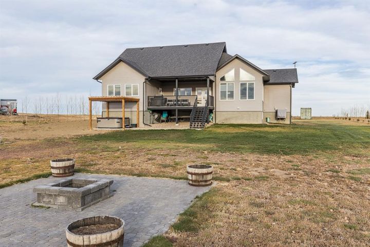 Welcome to the kind of lakefront lifestyle most people only dream about. Tucked along the peaceful shores of Klaudt’s Dam and only 15 minutes from town, this 2.17-acre property isn’t just a home — it’s a place where families grow, gather, and make memories all year long. From summer mornings spent on the water to winter evenings skating under prairie skies, this is a lifestyle that invites you to slow down, breathe deeper, and truly enjoy where you live. At the center of it all is a beautiful custom bungalow that blends thoughtful design with timeless style. The main floor welcomes you with an open-concept layout that frames those incredible lake views from every angle. The kitchen is built for connection — a large island for kids to perch at, quartz countertops, high-end appliances, and plenty of space to cook, gather, and celebrate!! Vaulted ceilings and a cozy fireplace make the living room the heart of the home, whether you’re hosting friends or winding down after a day on the lake. Step out onto the covered deck to take in the calm water, the huge yard, and the simple joy of having nature as your backdrop. The primary suite feels like a private retreat with its own lake views, a spa-inspired ensuite, and a clever pass-through walk-in closet connected directly to the laundry room — the kind of everyday convenience you won’t know how you lived without. Two more bedrooms and a full bath round out the main floor. The fully finished lower level adds even more room for living and playing. A spacious family area, rec room, and a flexible space perfect for a gym, playroom, home office, or hobby room make it easy for everyone to have their own corner of the home. Two additional bedrooms (the flex space could become a 6th if needed) and another full bath create the ideal setup for kids, guests, or multigenerational living. And then there’s the garage — oversized, heated, a dog run, hot & cold water, and built with both practicality and possibility in mind. Park multiple vehicles, set up a workshop, or store all the gear that comes with true acreage and lakefront living. With city water from West Side Water Co-Op and pressurized for irrigation, caring for the property is effortless. The expansive yard is ready for family barbecues, outdoor adventures, and long, relaxed evenings under the open prairie sky. And with the lake just steps away, every season brings something to look forward to — swimming, fishing, paddleboarding, skating, or simply sipping your morning coffee by the water. Whether you’re searching for a full-time family home or a place to escape and reconnect, this lakefront acreage in this special community offers something rare: luxury that feels liveable, nature at your doorstep, and a lifestyle designed for connection, adventure, and joy. This home is in immaculate condition; all that is to do is move in and start enjoying!