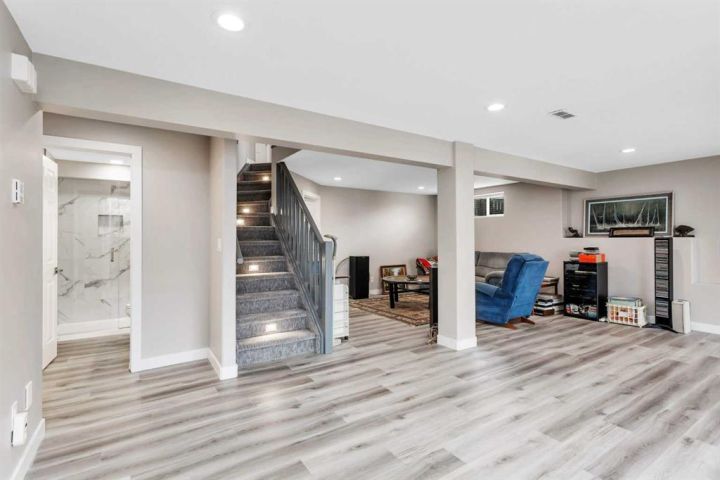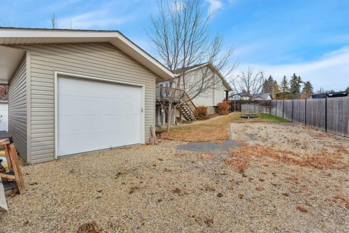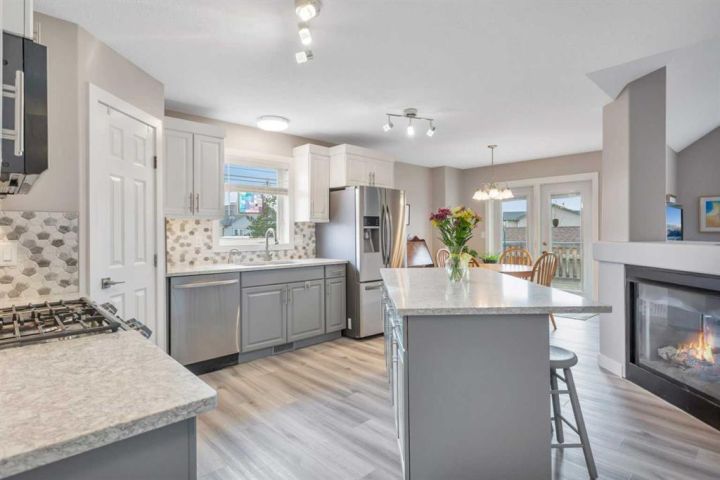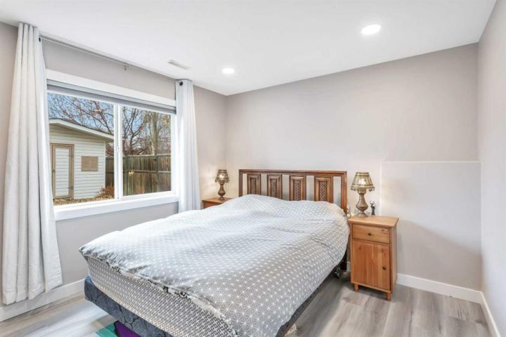 This beautifully renovated walkout bungalow blends open concept living with the warmth of natural light and west-facing views. Designed for connection and ease, the kitchen anchors the main floor with quartz countertops, statement backsplash, and updated appliances—all completed in a 2021 full-home remodel. The kitchen transitions into the dining area and living room, featuring vaulted ceilings and large windows. The cozy 3-way fireplace adds heart to the home. Main floor laundry, new vinyl plank flooring, pot lights, and fresh paint throughout make daily living streamlined and stylish. The primary suite offers smart functionality with a renovated 3-piece bath. A second bedroom that was converted to the upper laundry area and vaulted den (perfect as an office or flex room) complete the main level. Downstairs, the fully finished walkout basement opens wide with natural light pouring in from rear windows and walkout patio doors. In floor heat, two more bedrooms, a third renovated bath, and a generous rec room make this level ideal for teens, guests, or use as the entertainment zone. The backyard is all you need and more with mature trees, planter boxes, a large shed, and direct yard access through the walkout. Rarely found, this home also features both a heated attached garage and a new heated single detached garage, perfect for a workshop or storing your prized toys. There’s also a dedicated RV pad for expanded parking options and easy back-alley access. Behind the beauty: all major systems have been updated in the last four years, including furnace, water tank, water softener, eavestroughs and more. Truly move-in ready, this home is more than renovated, it is thoughtfully upgraded for everyday comfort, lasting style, and modern living.