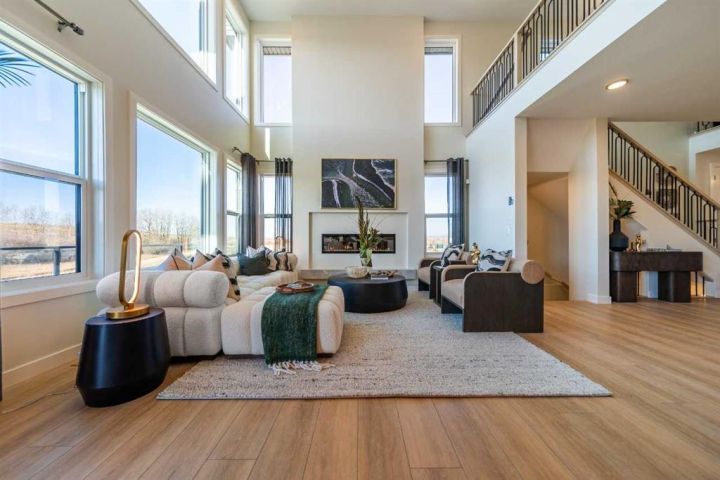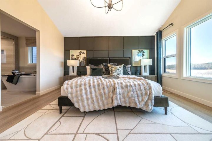 Welcome to The Amber, a beautifully designed home that blends luxury and function. Built by a trusted builder with over 70 years of experience, this home showcases on-trend, designer-curated interior selections tailored for a home that feels personalized to you. This energy efficient home is Built Green certified and includes triple-pane windows, a high-efficiency furnace, and a solar chase for a solar-ready setup. Featuring a full package of smart home technology, this home includes a programmable thermostat, ring camera doorbell, smart front door lock, smart and motion-activated switches, all seamlessly controlled via an Amazon Alexa touchscreen hub. The executive kitchen features built-in stainless steel appliances, a gas cooktop, fridge with water and ice dispenser, and a quartz waterfall island. A separate spice kitchen with a gas range and pantry adds extra convenience. The main floor includes a bedroom and full bathroom, ideal for guests or extended family. The open-to-above great room showcases a stunning gas fireplace with floor-to-ceiling tile and a stylish mantle, while the rear deck offers a great outdoor escape. The basement includes 9' ceilings and a separate side entrance, allowing for future development potential. The primary ensuite offers a walk-in tiled shower, soaker tub, and dual sinks. With quartz countertops, luxury vinyl plank flooring on the main level, tile in wet areas, and added windows throughout, The Amber is a true standout. Estimated completion is February-May, 2026. Photos are representative.