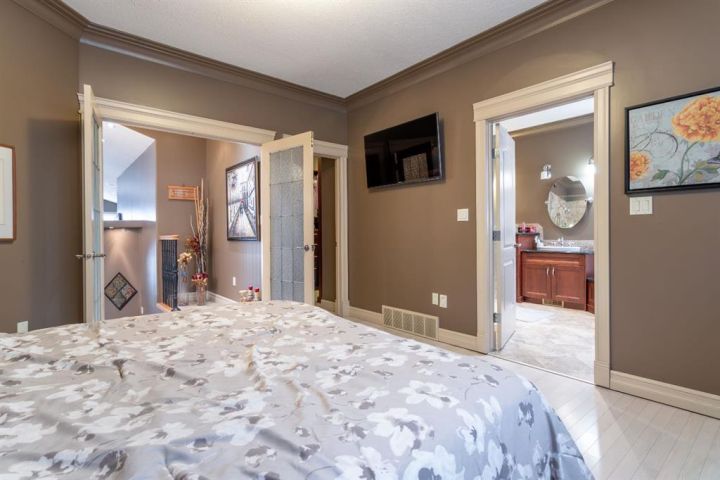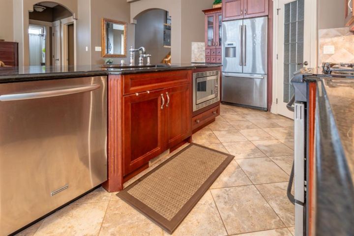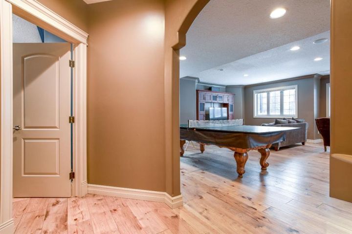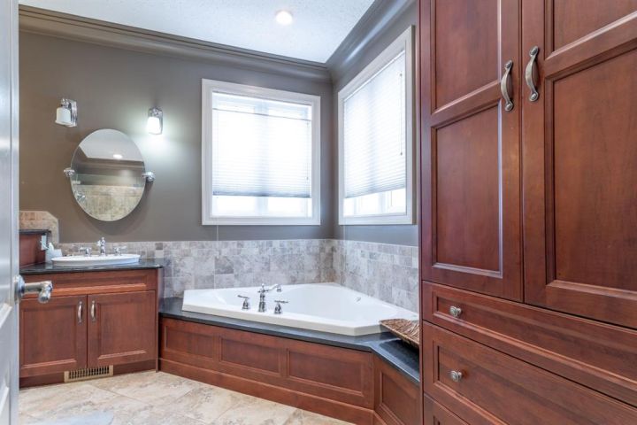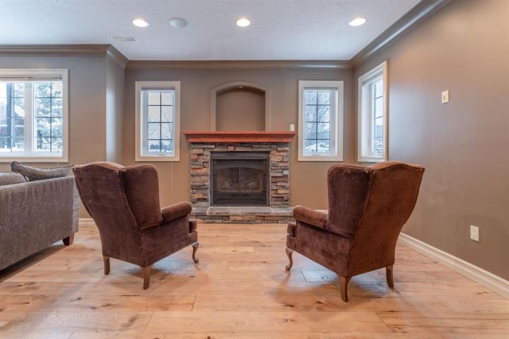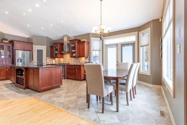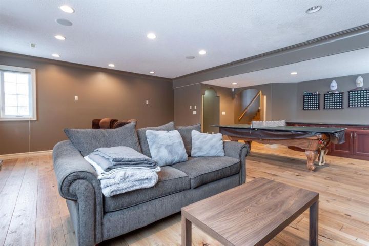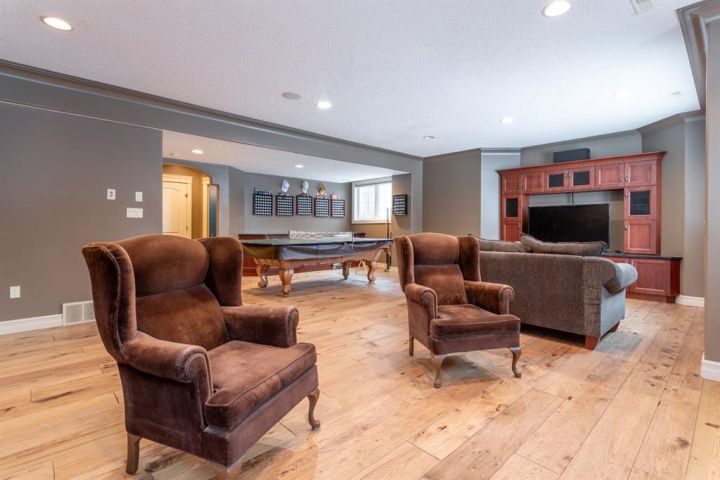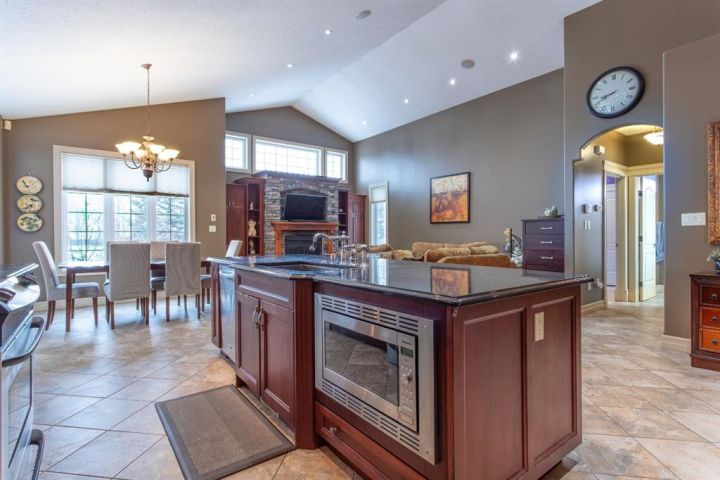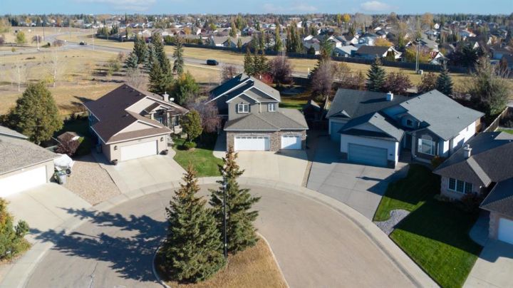 A Quiet Cul-de-Sac Home With Room to Settle In. There’s an easy feel to this home from the moment you pull onto the cul-de-sac — quiet, tucked away, and backing onto green space next to Lakeland College. It sits on a 0.3-acre pie-shaped lot, so you get privacy, mature trees, and a yard that gives you space to breathe. Inside, the layout works the way people want it to. The front entry is wide and welcoming, and the laundry room is right there on the level you walk in on. The main floor opens up with maple hardwood, a gas fireplace framed in custom cabinetry and a kitchen designed for real use: a big island, pantry, granite counters, stainless appliances, and a garden door out to that huge yard. Upstairs, the primary bedroom is its own comfortable space with an 80 sq. ft. walk-in closet and an ensuite that’s practical and well laid out — double sinks, corner tub, and glass shower. Downstairs is fully finished and set up for easy gathering, whether that’s movie nights or having friends over. There’s a second fireplace, more custom cabinetry, a dry bar with a wine fridge and room for the pool table (which can stay). Hot water on demand, central A/C and a storage-friendly utility room round it out. The triple heated garage (1000 sq feet!) gives you even more flexibility with its sink, counter space, and rear access. The double side is 25 feet deep while the single side is 32 feet deep with passthrough to the back yard. Five bedrooms, a standout yard and a neighbourhood people stay in for years — if this feels like a fit, reach out to arrange a viewing!